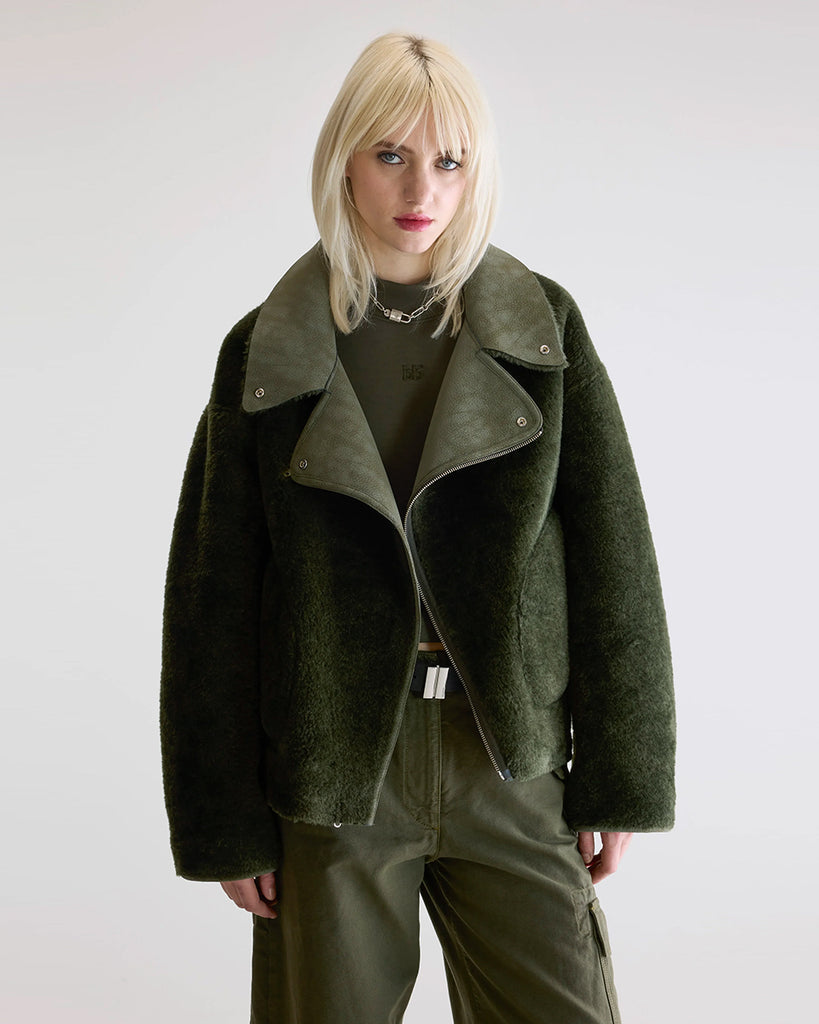 Skórzana kurtka typu bomber Starlight Leather marki STELLA NOVA o pudełkowym fasonie. Posiada kołnierzyk i dwie, przednie kieszenie z klapkami. Na ramionach posiada hafty z motywem gwiazd i księżyca. Wykończona elastycznymi ściągaczami. Kurtka ma podszewkę. Wykonana ze skóry jagnięcej. To ponadczasowy klasyk z efektownym akcentem, który pasuje do ulubionych jeansów, jak i do spódnicy z wysokim stanem.