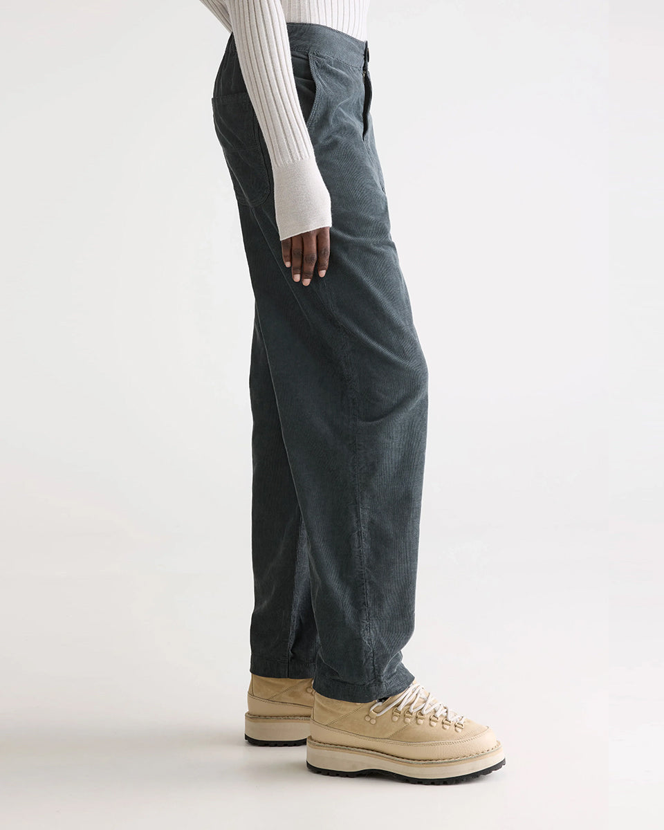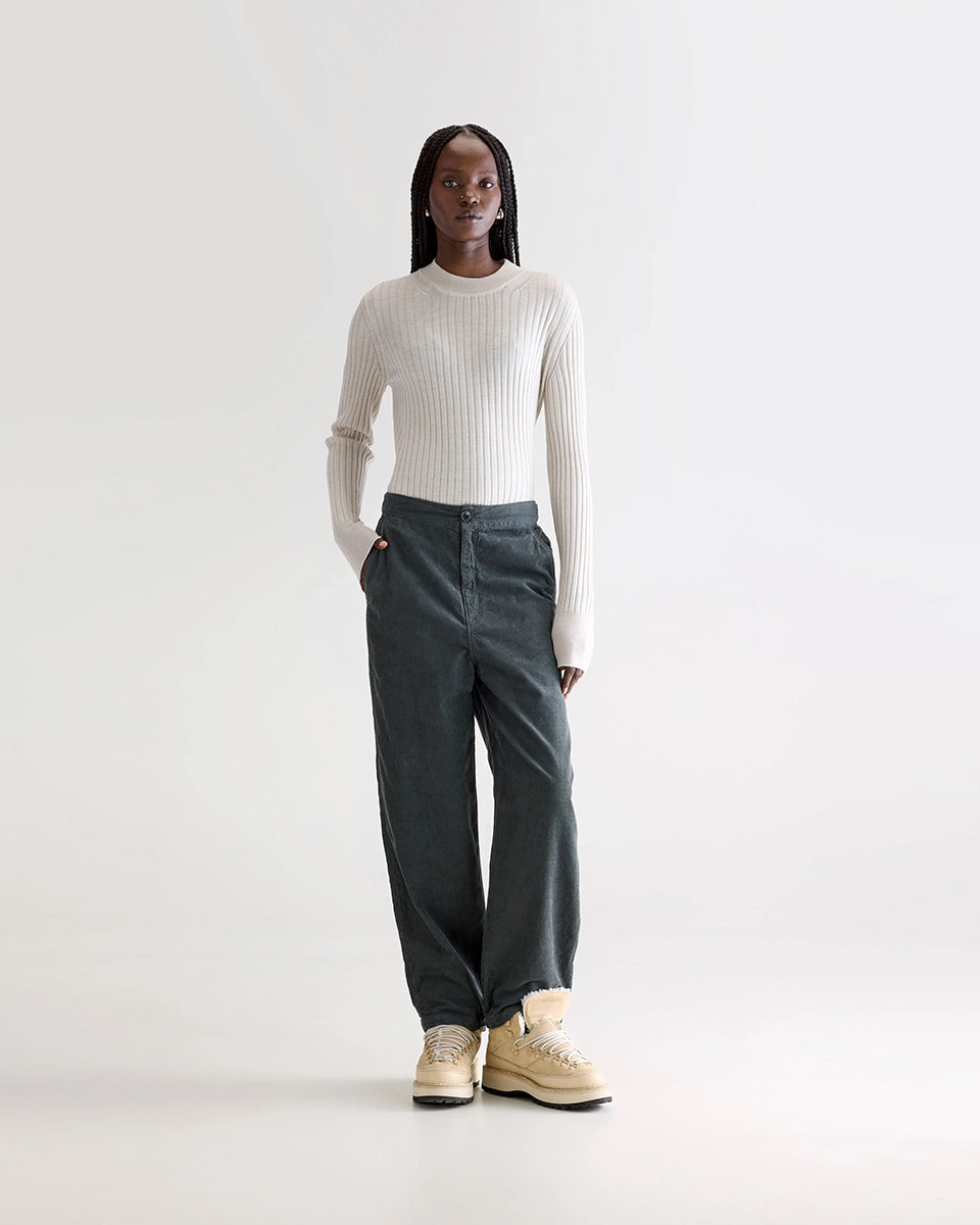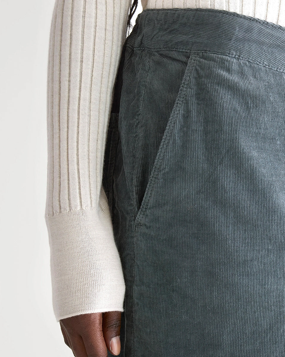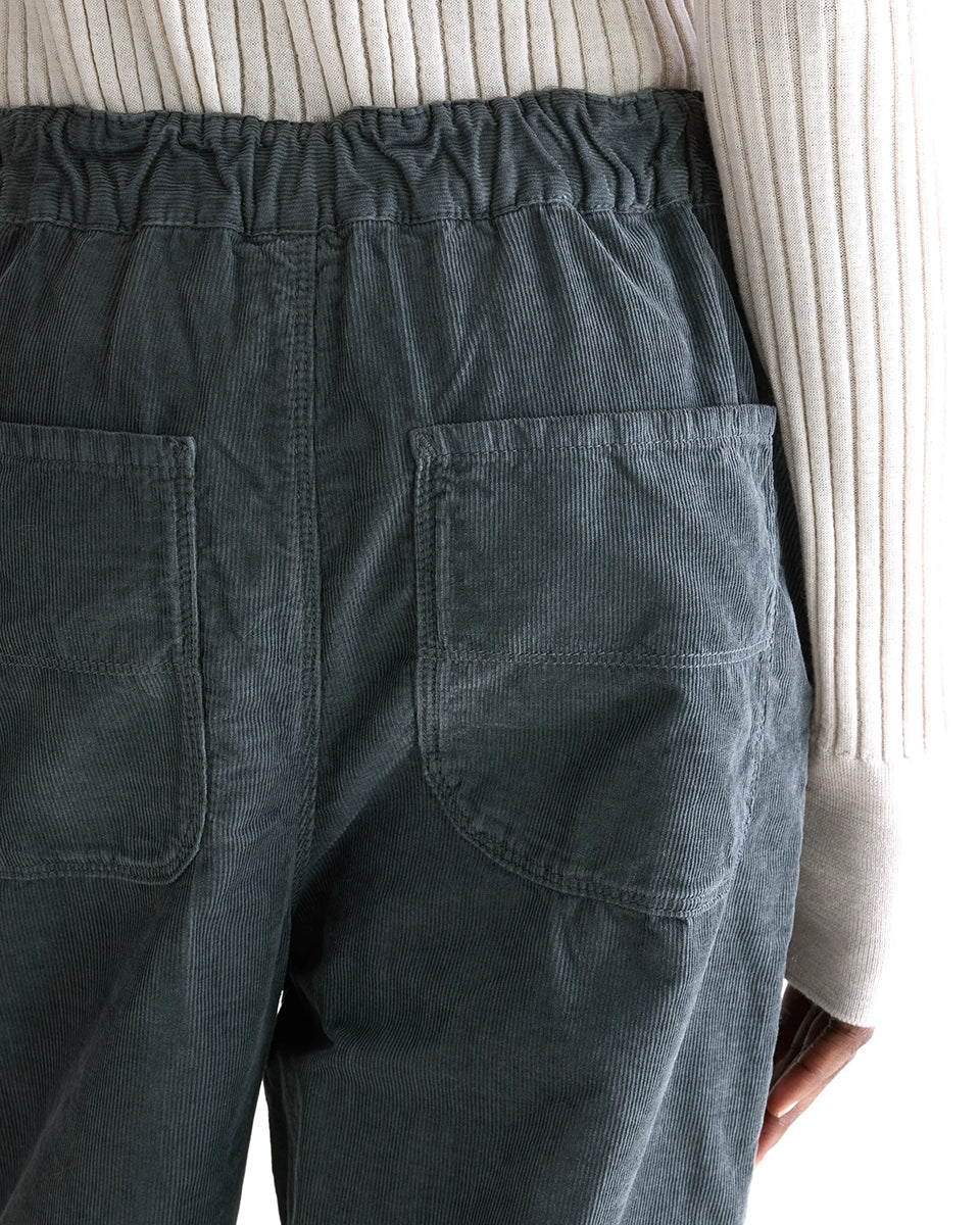 Kultowy model marki Bellerose - sztruksowe spodnie Pasop. Posiadają wysoki stan i prostą, szeroką nogawkę. Luźne w biodrach i udach. Z tyłu elastyczne w pasie, co gwarantuje wyjątkowy komfort ich noszenia. Sztruksy mają dwie boczne i dwie tylne kieszenie. Zapinane są na guzik i zamek błyskawiczny. Idealne na codzień. Połącz je z ulubionym t-shirtem i sneakersami lub mokasynami, koszulą i marynarką. Sprawdzą się zarówno do pracy jak i w luźnej, weekendowej stylizacji.