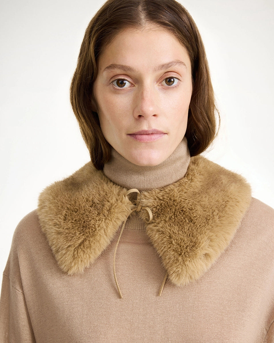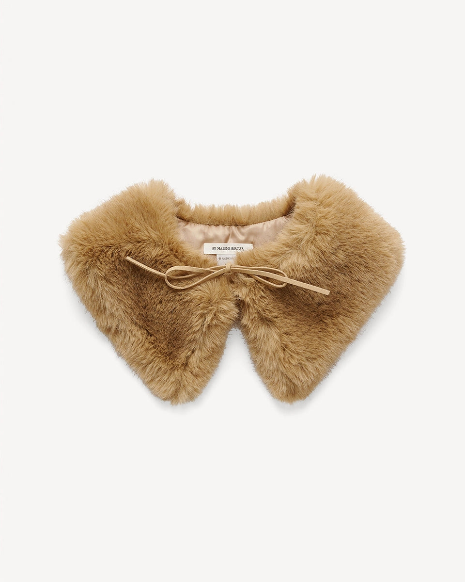 Duży, efektowny kołnierz ze sztucznego futra Cowie By Malene Birger. Wiązany pod szyją za pomocą rzemyka. Idealny dodatek gwarantujący metamorfozę ulubionemu płaszczowi, marynarce lub swetrowi.