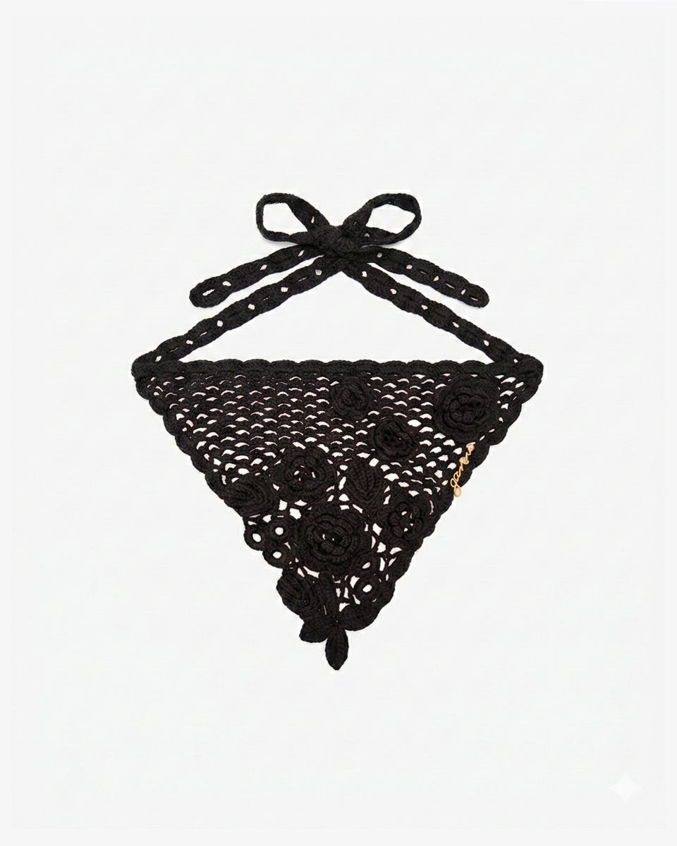Haftowana chusta na głowę Cotton Crochet Black marki GANNI w pięknym, czerwonym kolorze, z kwiatami i logo marki. Wykonana z bawełny organicznej.