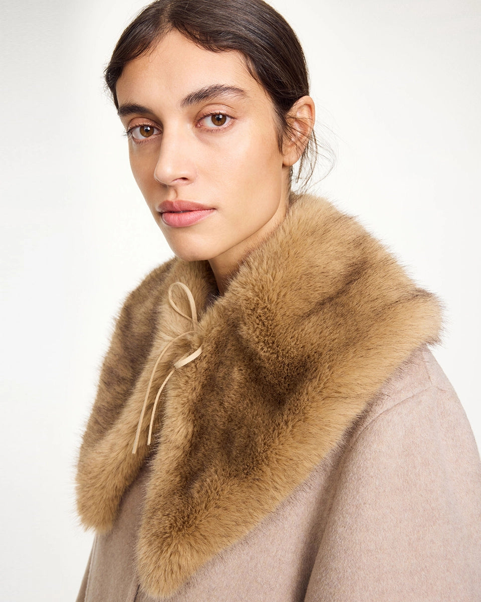 Duży, efektowny kołnierz ze sztucznego futra Cowilla By Malene Birger. Wiązany pod szyją za pomocą rzemyka. Posiada podszewkę. Idealny dodatek gwarantujący metamorfozę ulubionemu płaszczowi czy kurtce.