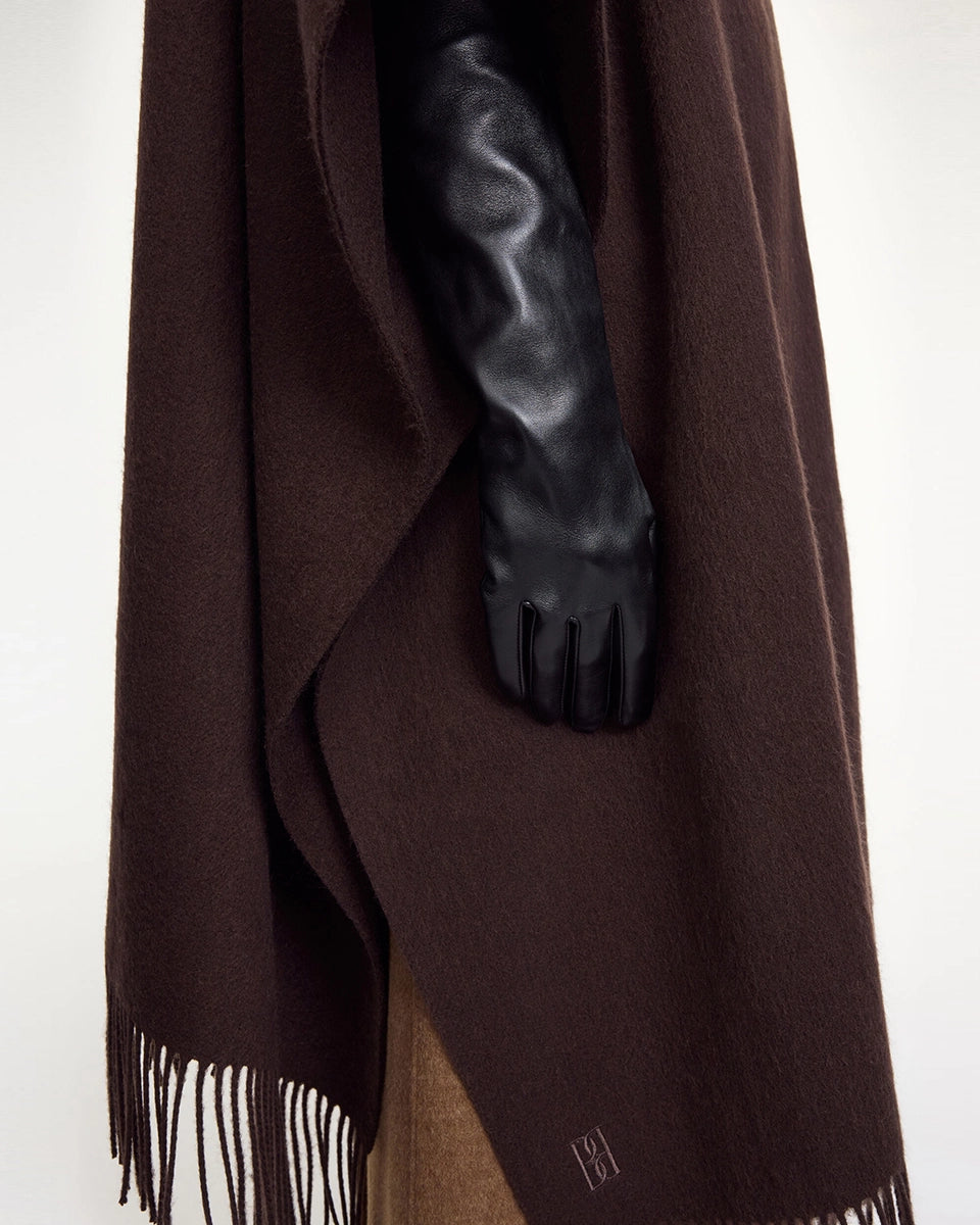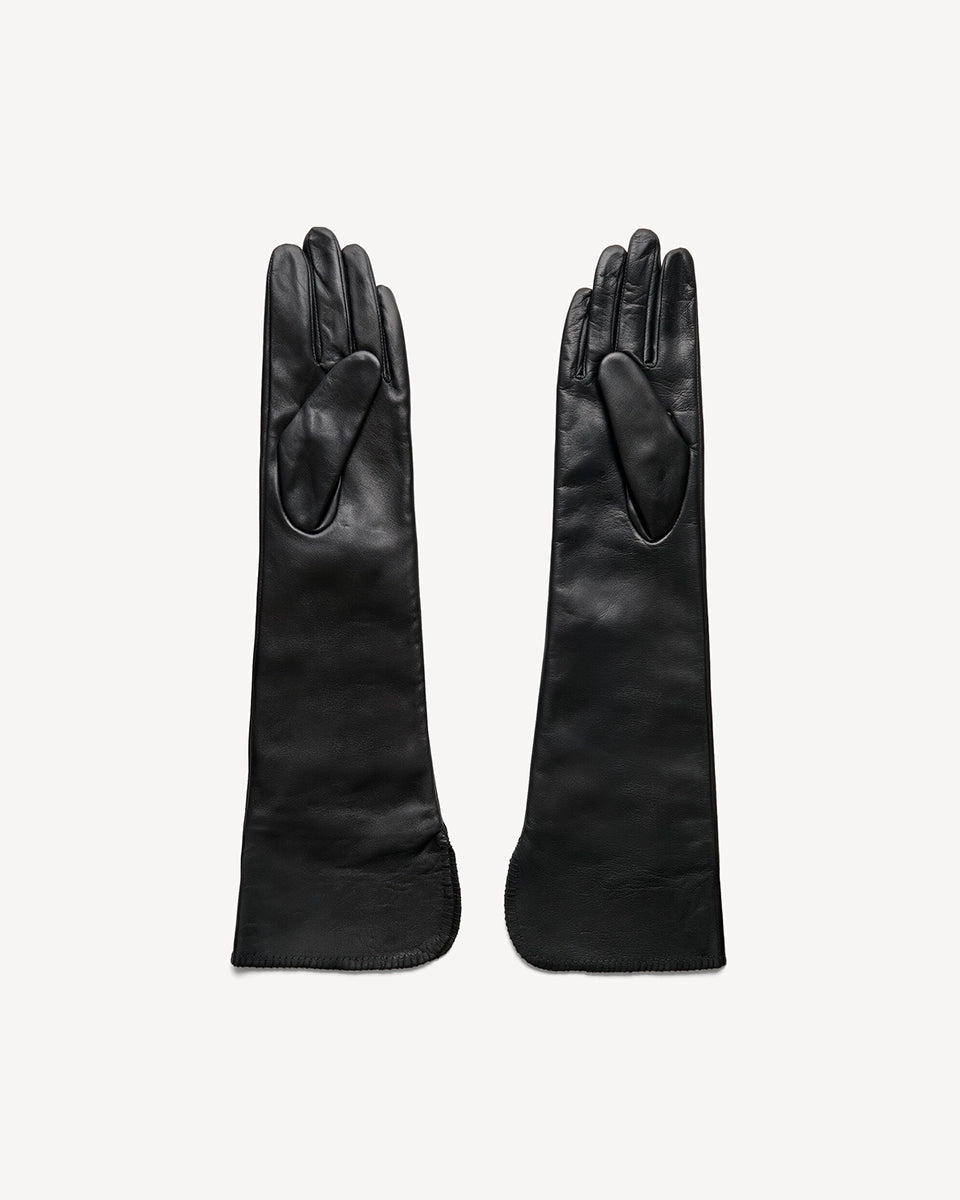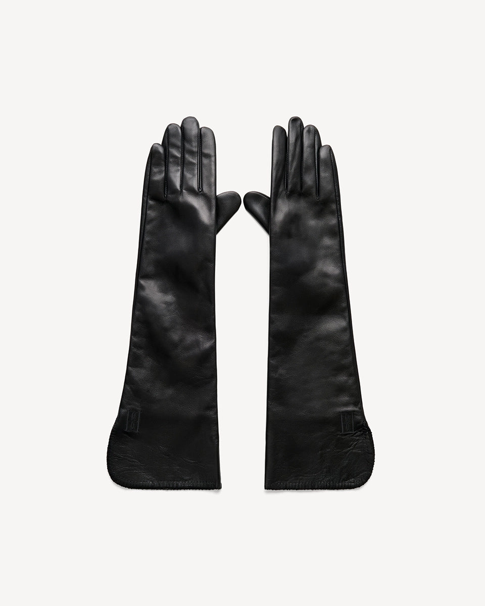 Długie, skórzane rękawiczki Gemi By Malene Birger z niewielkimi, haftowanymi emblematami z logo marki. Wykonane z najlepszej jakości, miękkiej skóry owczej.