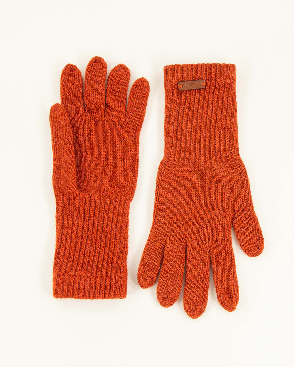 Wełniane, ciepłe rękawiczki Niels Red Amarante marki Sessun. U dołu mają naszywkę z logo marki. Wykonane z wełny pochodzącej z recyklingu.