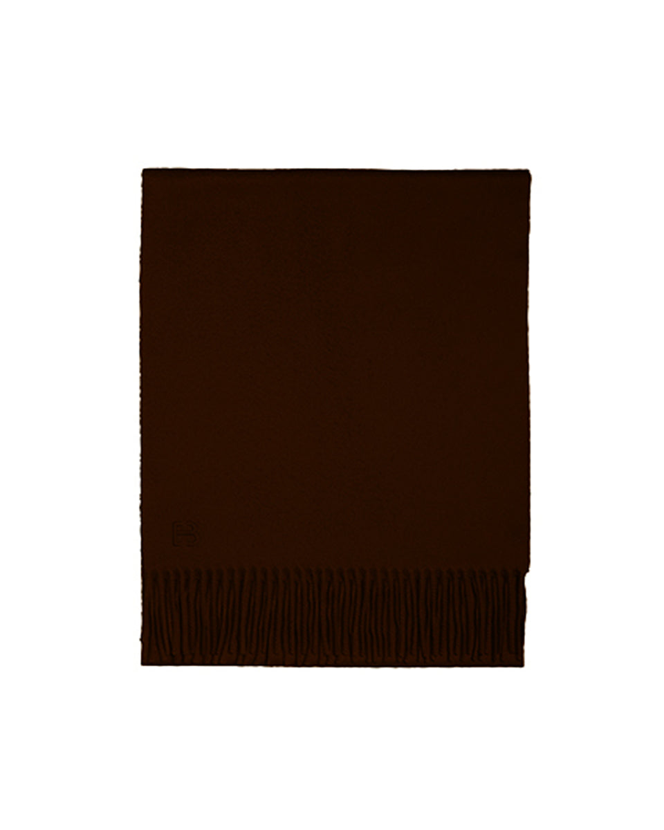 Klasyczny szal A1B U ERIC BOMPARD Chocolat w kolorze brązowym wykończony frędzlami. U dołu szala wyhaftowane jest logo marki. Wykonany w 100% z kaszmiru.