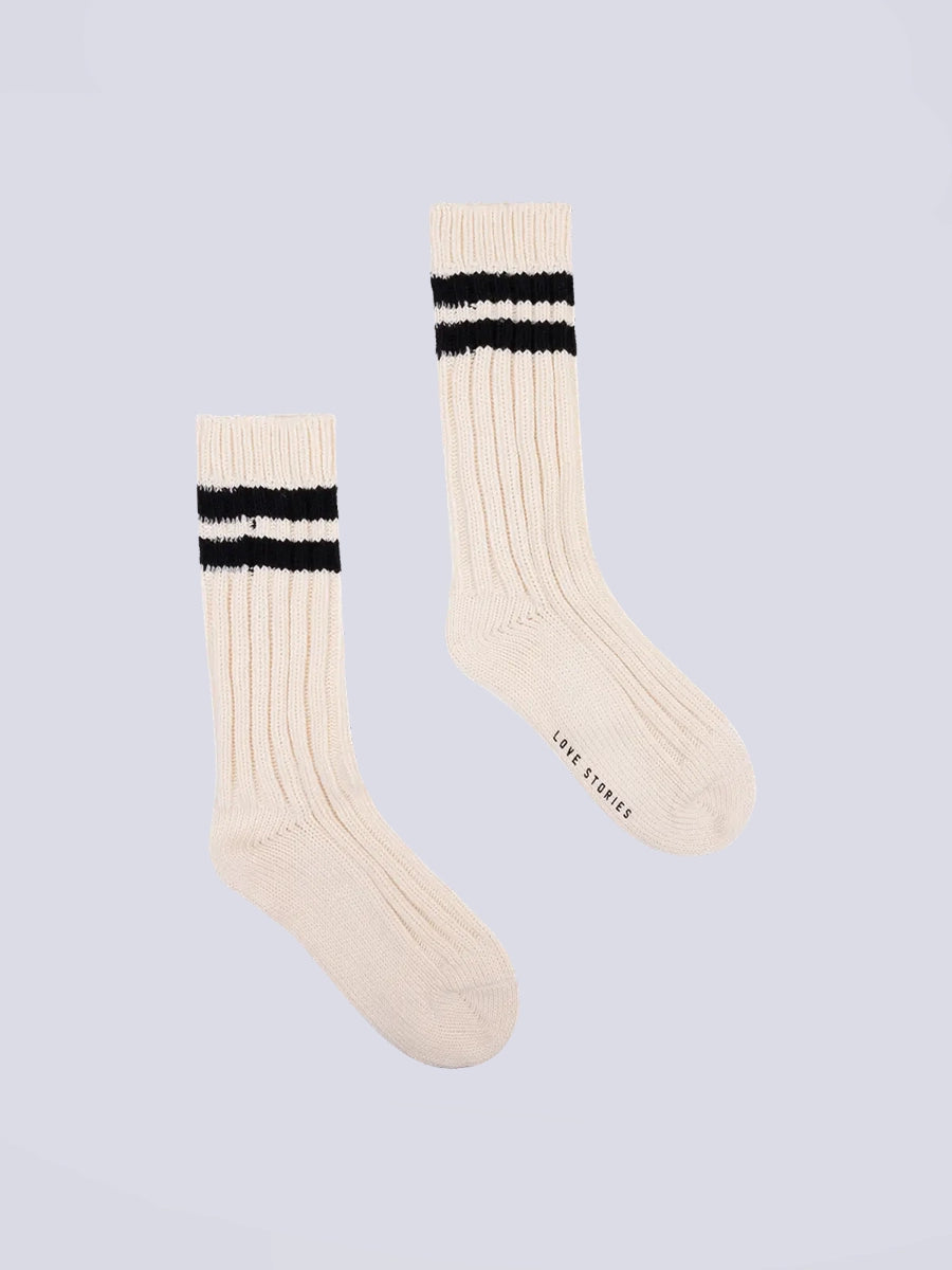 Kremowe, długie, dzianinowe skarpetki Rib Stripe Love Stories z dwoma, kontrastowymi paskami.
