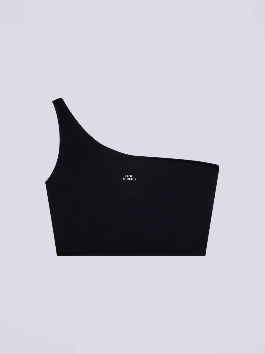 Sportowy, krótki top na jedno ramię Kaia Love Stories. Z przodu posiada niewielkie logo marki. Wykonany z miękkiej i gładkiej tkaniny. Idealny na zajęcia pilatesu czy jogę.