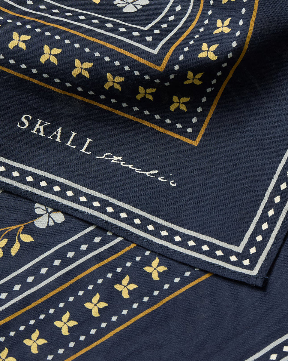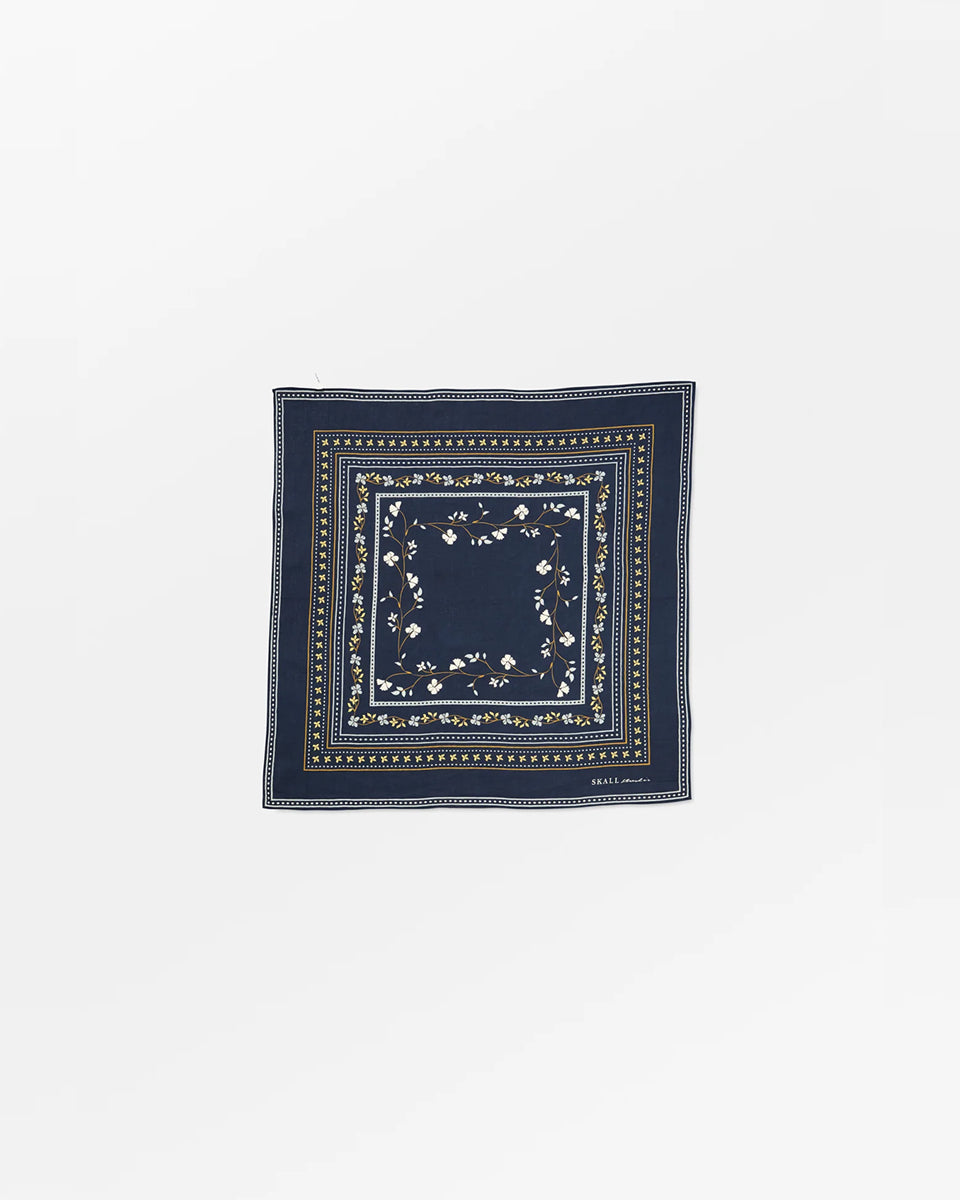 Klasyczna apaszka Skall Floral z cienkiej bawełny organicznej w drobny, roślinny print.