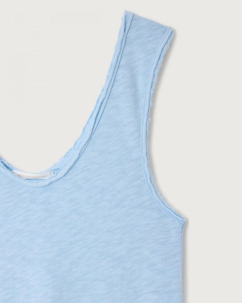 Luźny, szary top na szerokich ramiączkach Sonoma American Vintage z głębokim, okrągłym dekoltem. Wykończony delikatnym, surowym "strzępieniem". Wykonany z grubej i miękkiej bawełny.