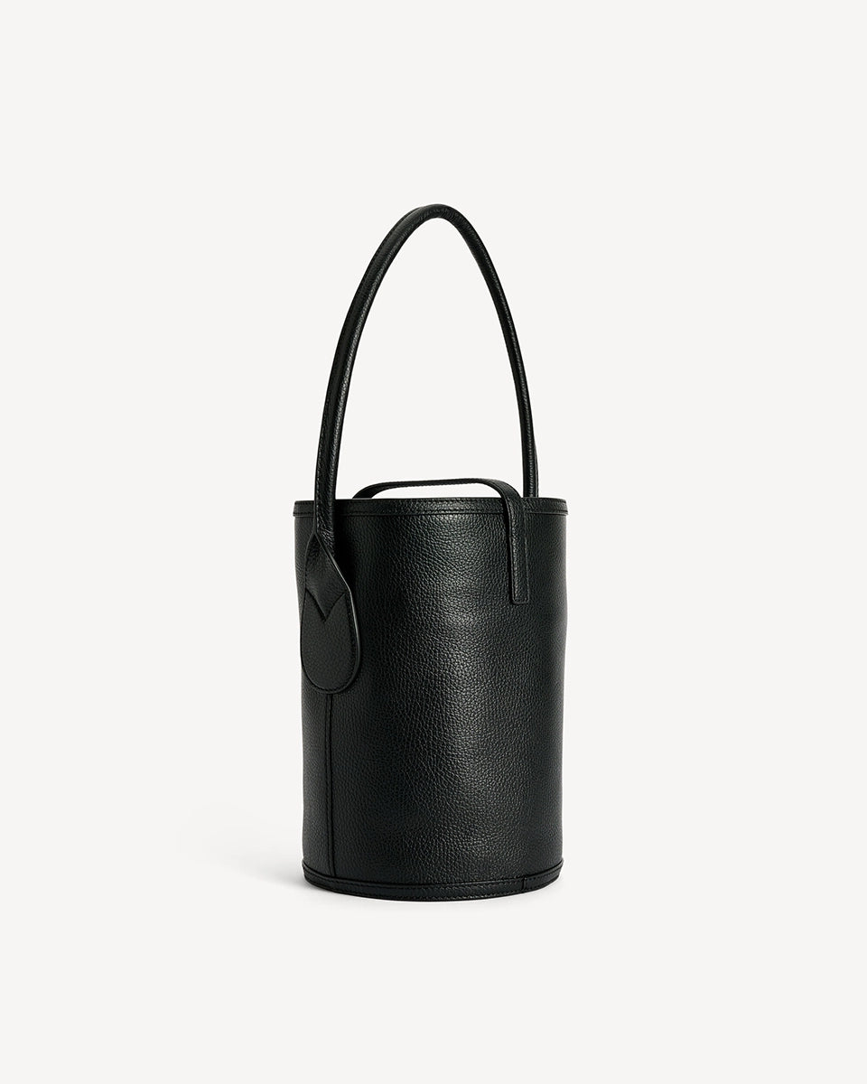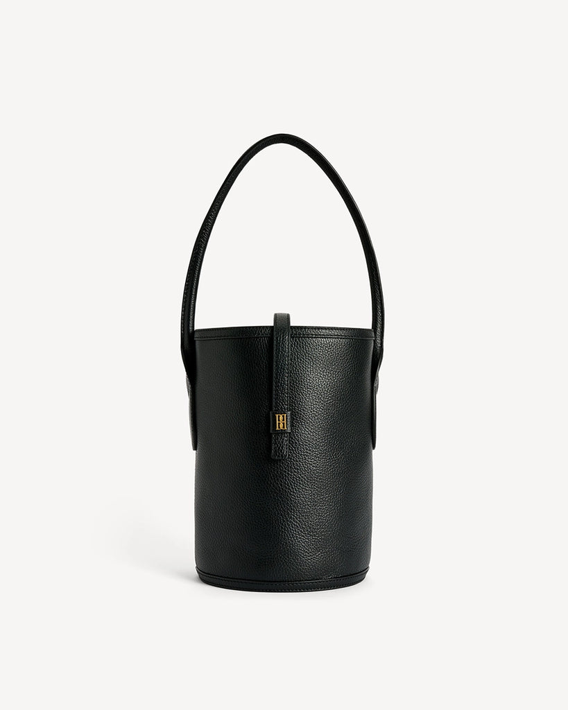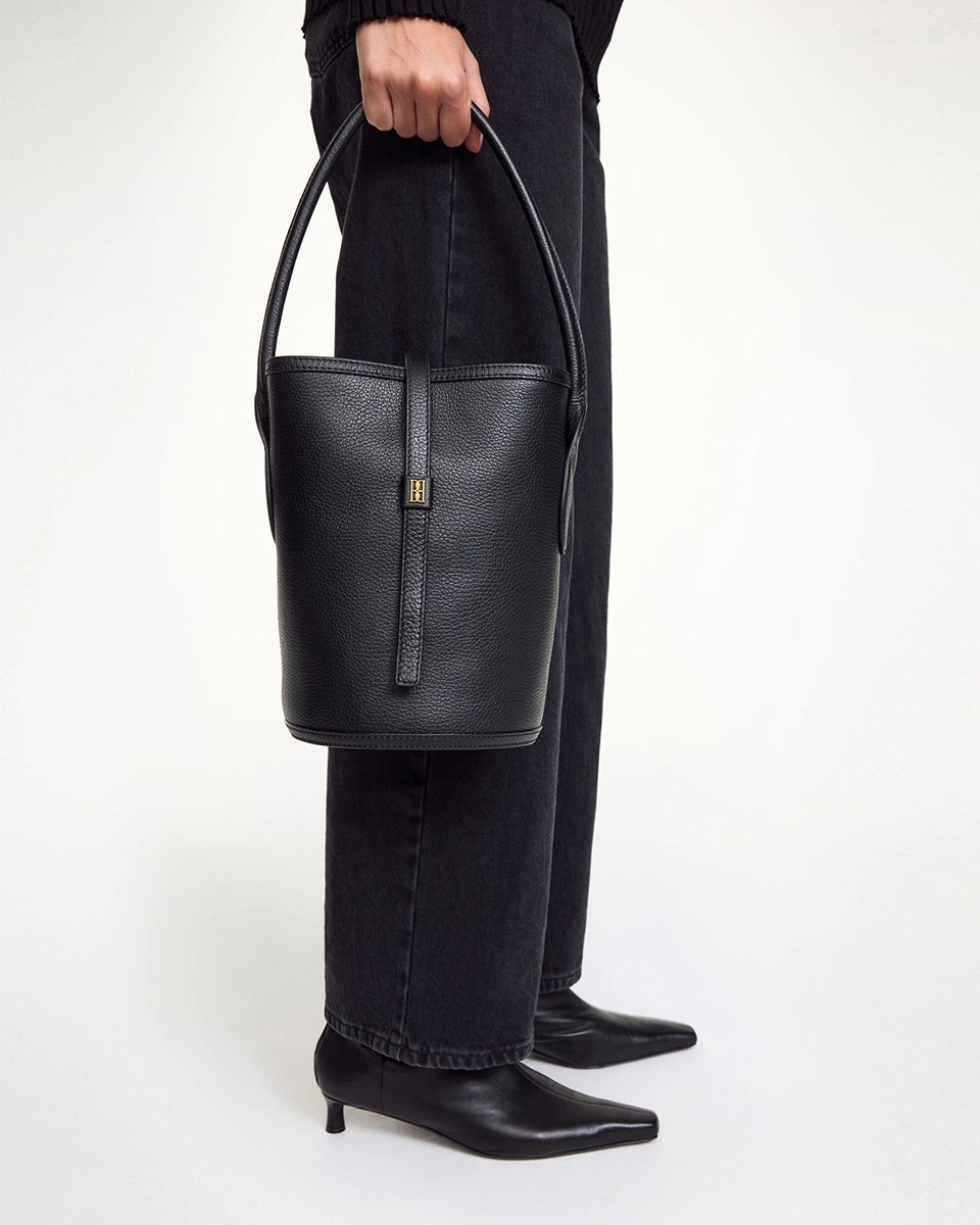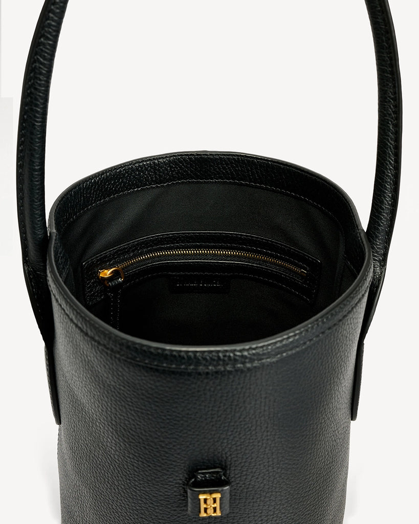 Mała skórzana torebka kubełek Maryllon By Malene Birger. Posiada cienki pasek do wygodnego zawieszenia na ramieniu. Wewnątrz ma niewielką kieszonkę na najważniejsze drobiazgi takie jak klucze czy niewielki portfel. Zapinana od góry za pomocą cienkiego paska z pozłacanym, małym logo marki. Idealna na co dzień. Wykonana z krowiej skóry z chropowatą fakturą.