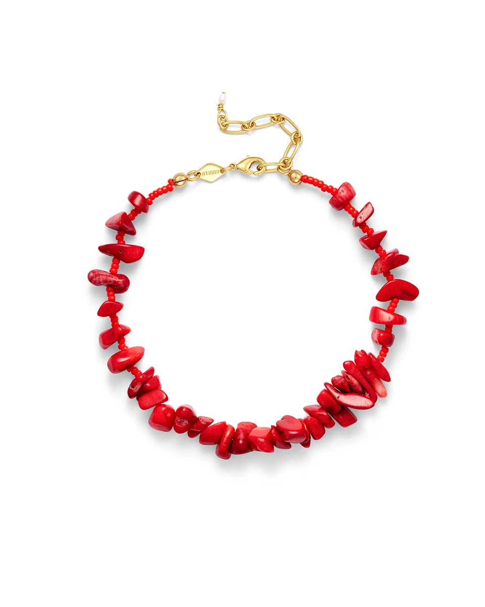 The chunky ANNI LU Reef Anklet anklet features irregularly sized sea bamboo stones interspersed with small glass beads. Finished with an adjustable gold-plated chain, it ends with a tiny freshwater pearl.