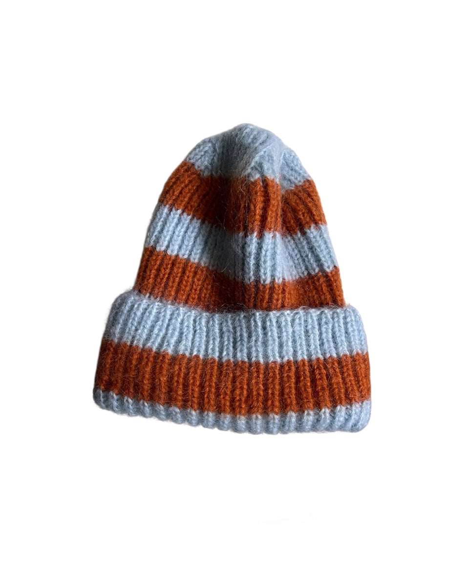 Czapka w paski Wedding marki Berenika Czarnota wykonana z bardzo ciepłej mieszanki wełny i moheru.Stworzenie jednej sztuki zajmuje jeden dzień.