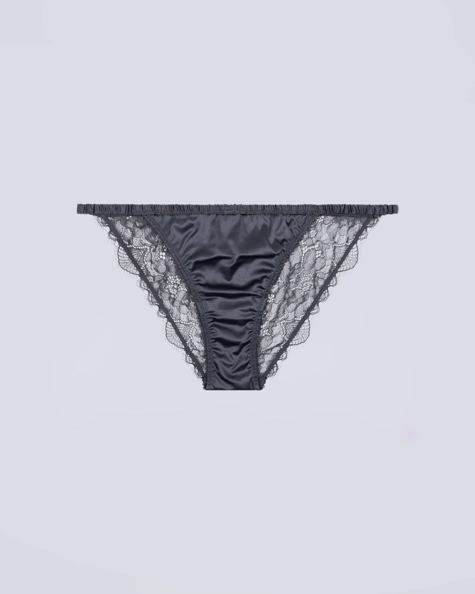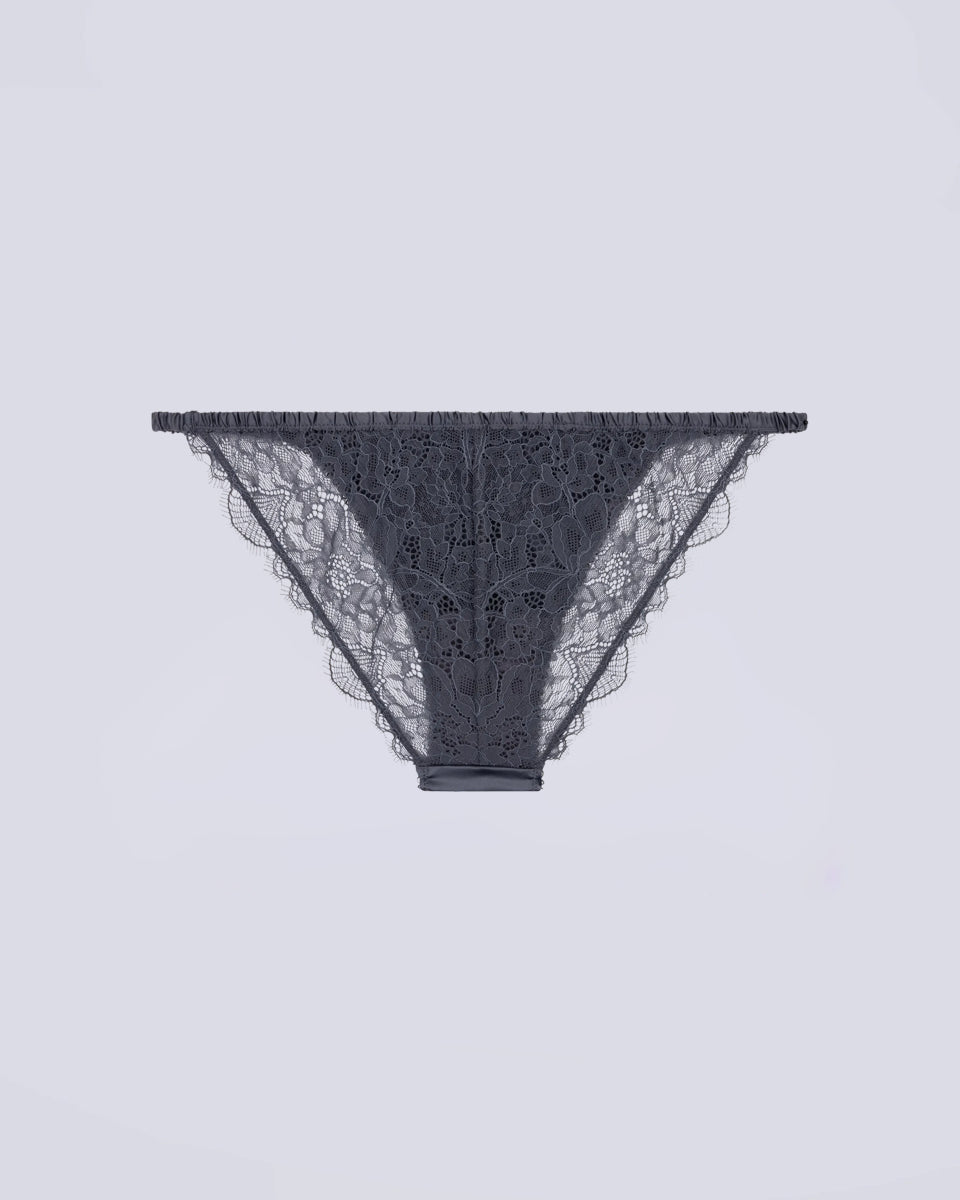 The Wild Rose Love Stories dark gray low-rise briefs are crafted from smooth fabric and floral lace. They feature a smooth, wide elastic waistband and a breathable cotton lining.