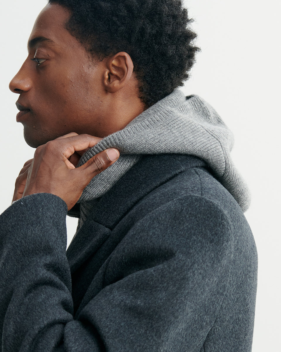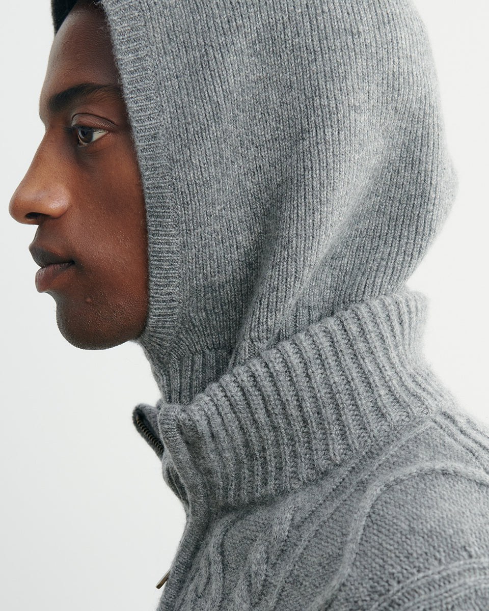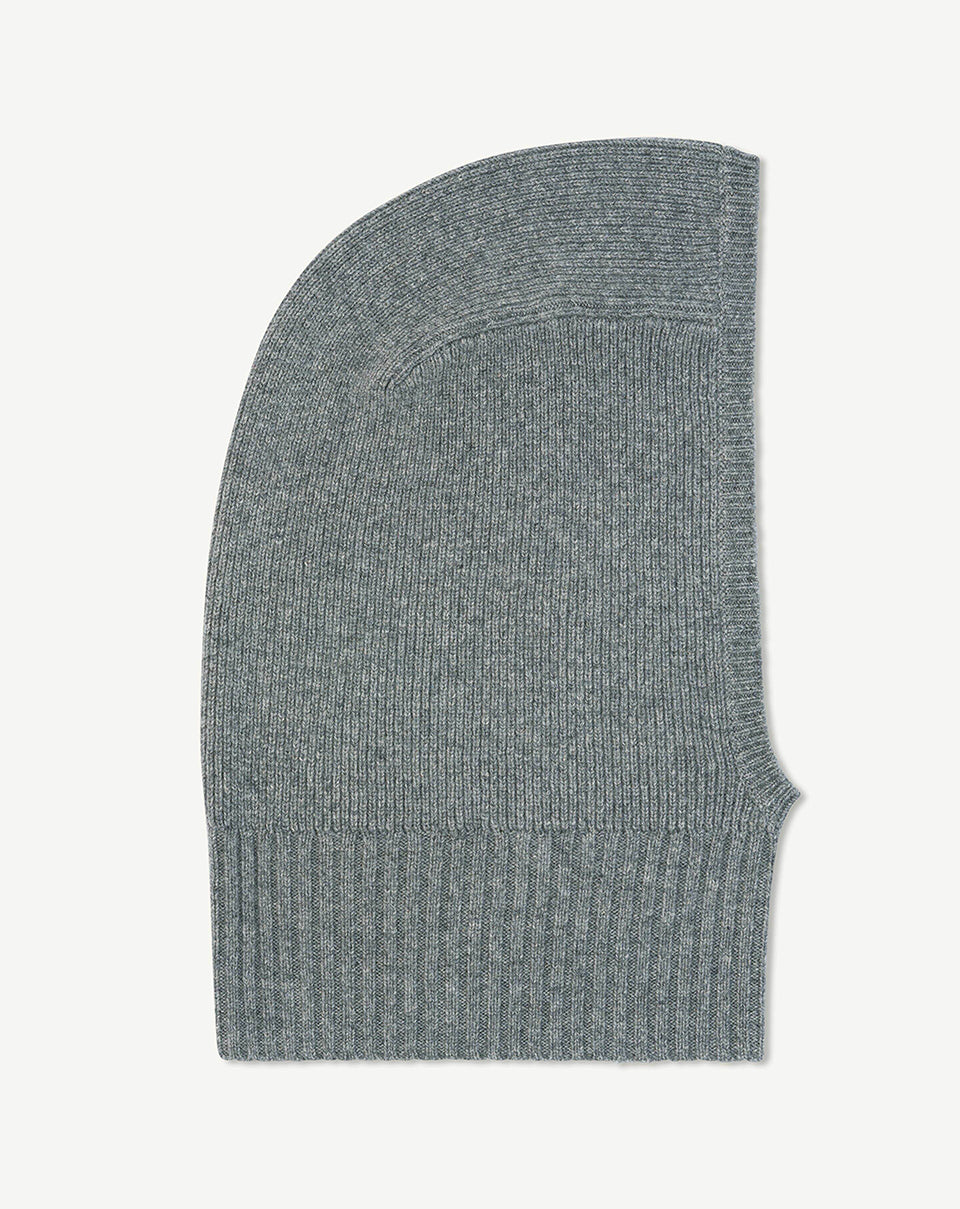 Loose, gray AK333 Gris Meteorite balaclava made of very soft, ribbed knit fabric with cashmere.