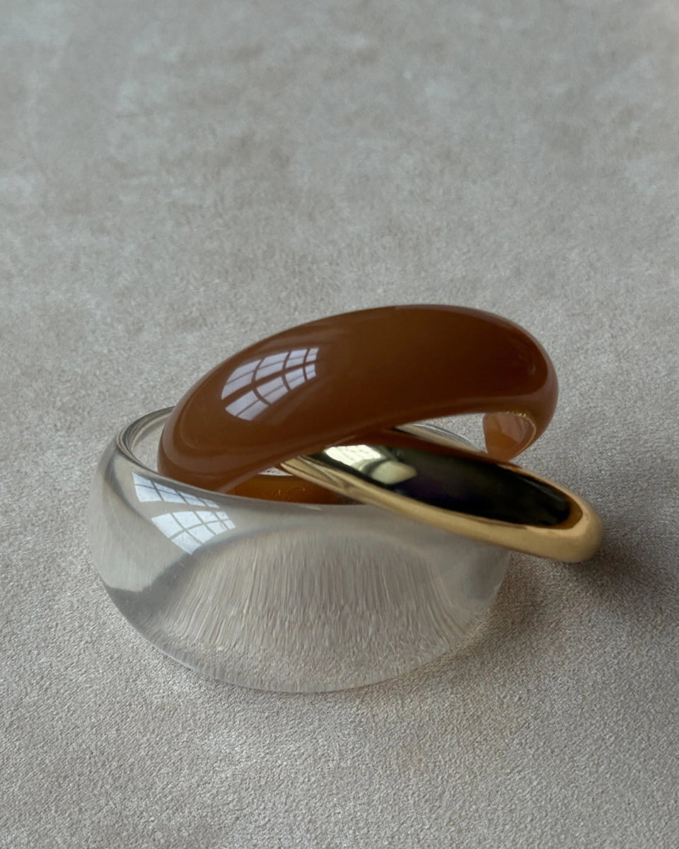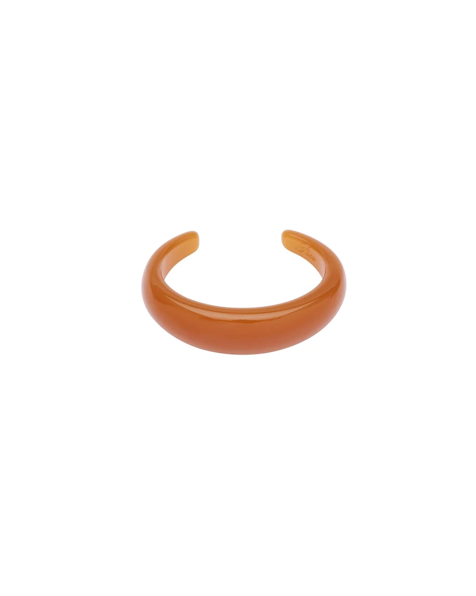 Thick C-shaped synthetic resin bracelet.
