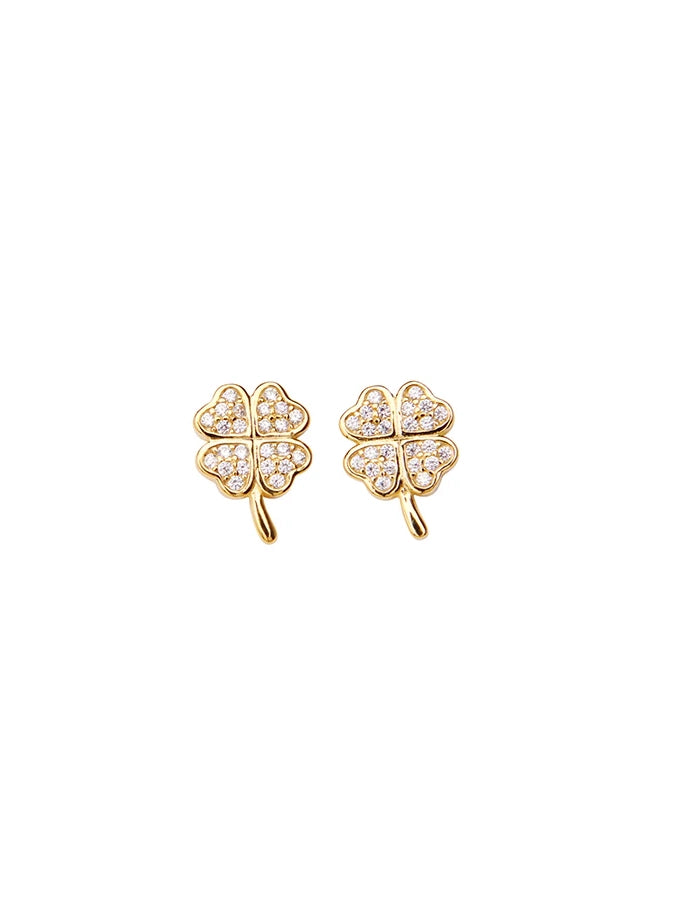 Small, gold-plated clover-shaped stud earrings set with white Clover Pico Copenhagen crystals.