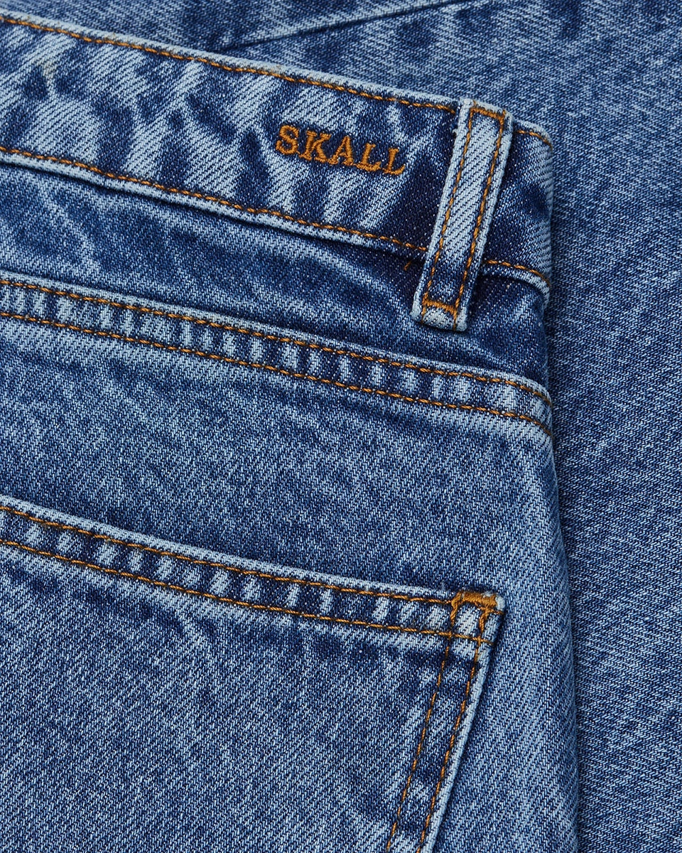 Allison SKALL's relaxed, blue jeans feature a mid-rise waist and a straight, loose, slightly cropped leg. They feature a five-pocket design and belt loops. They fasten with a button and zipper. Made of certified organic cotton with a subtle washed finish, they feature a small, embroidered brand logo on the back. Perfect to pair with loafers or your favorite sneakers.