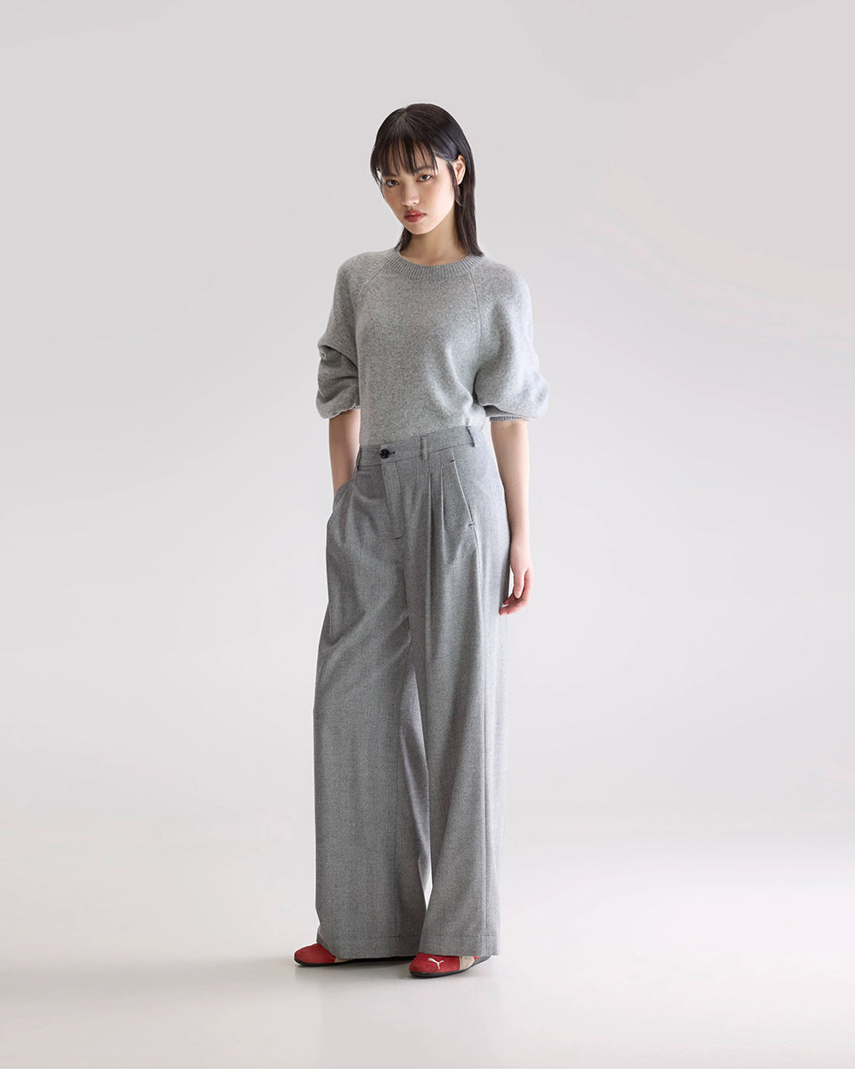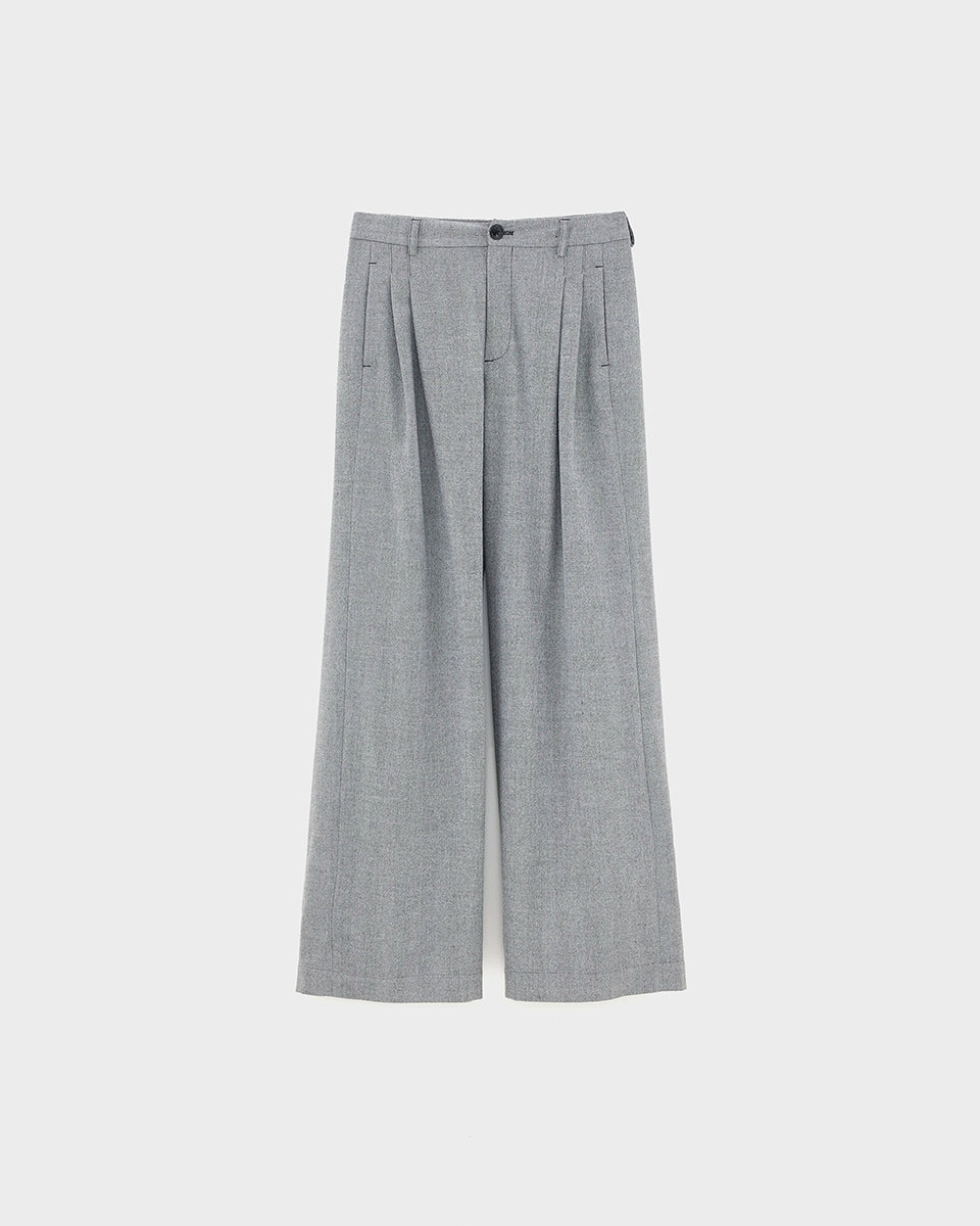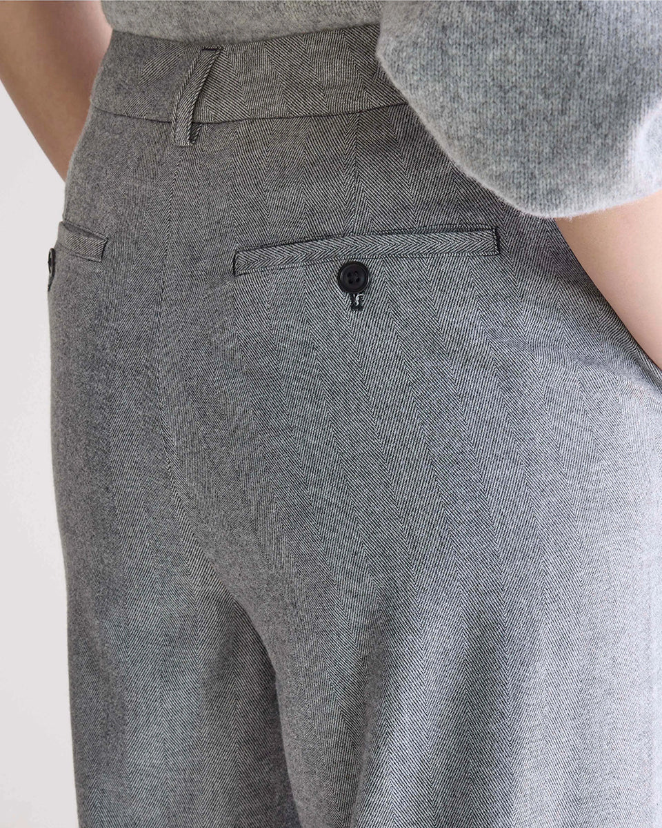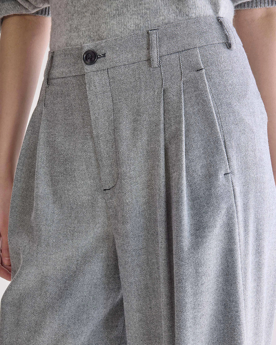 Volkert Bellerose loose-fitting, high-waisted trousers with pleats. The trousers feature wide, straight legs. Crafted from a soft viscose blend with a subtle herringbone pattern, they feature two side pockets and two back pockets. Pair them with a cropped, boxy sweater or a fitted polo shirt. Perfect for everyday wear and work.