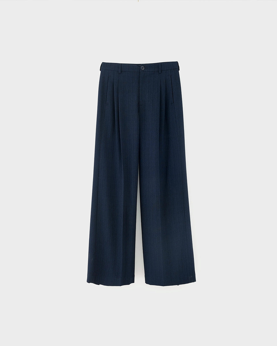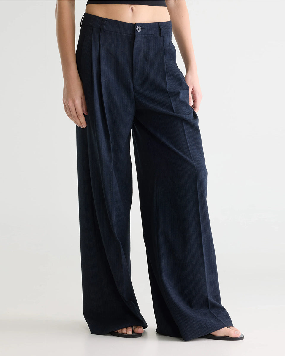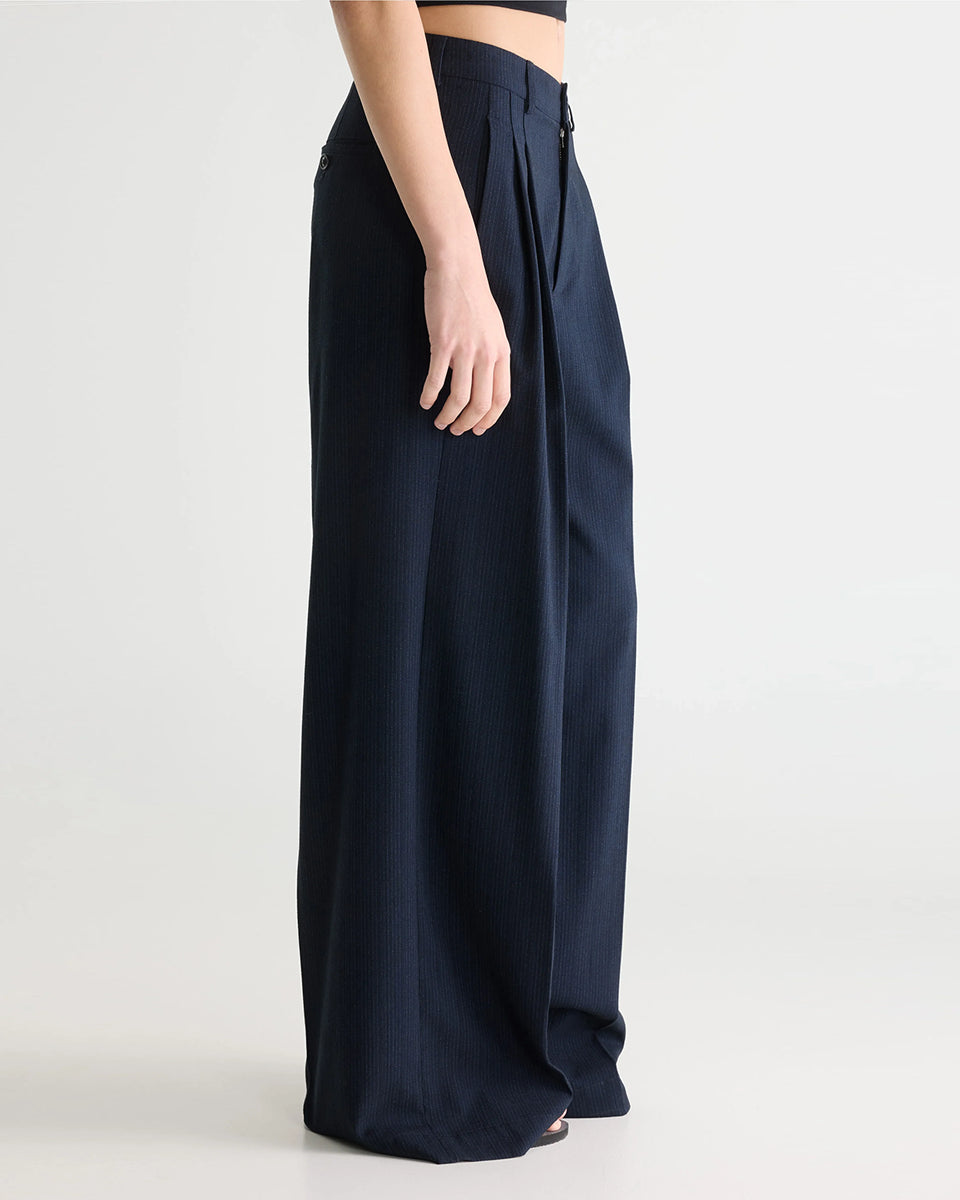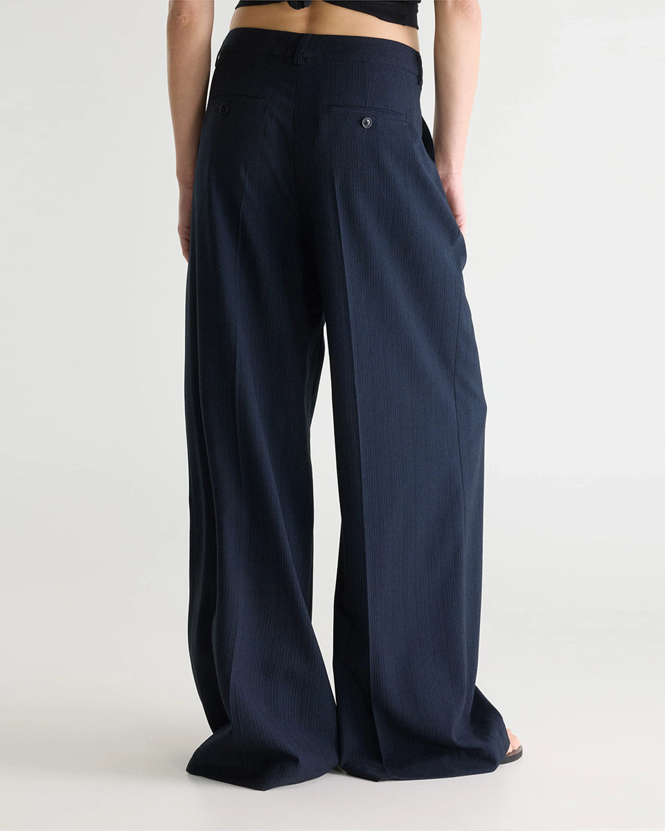 Volkert Bellerose loose-fitting, high-waisted trousers with pleats. The trousers feature wide, straight legs. Made of soft fabric with subtle stripes, they feature two side pockets and two back pockets. Pair them with a short, boxy sweater or a slim-fitting turtleneck. Perfect for everyday wear and work.
