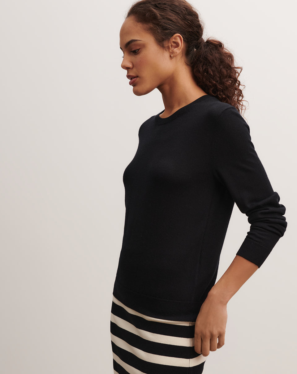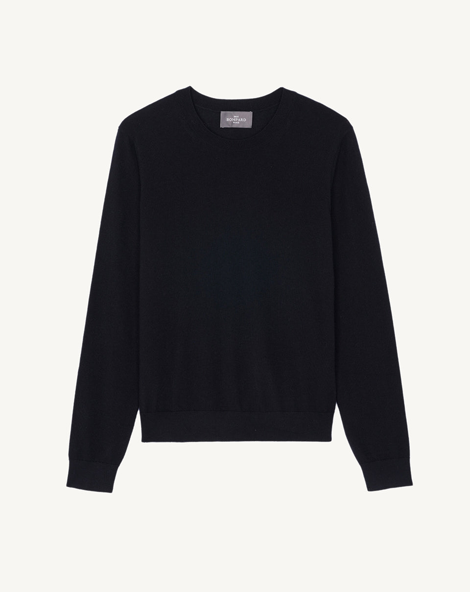 The MO2241N Noir sweater in black features a thin, classic crew neck, long sleeves, and dropped shoulders. Made of 100% cashmere, it pairs perfectly with classic jeans or a skirt.