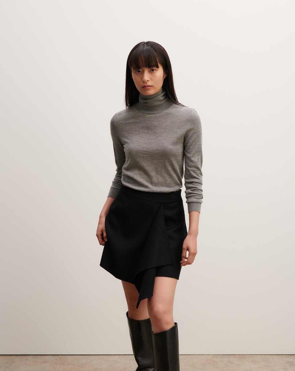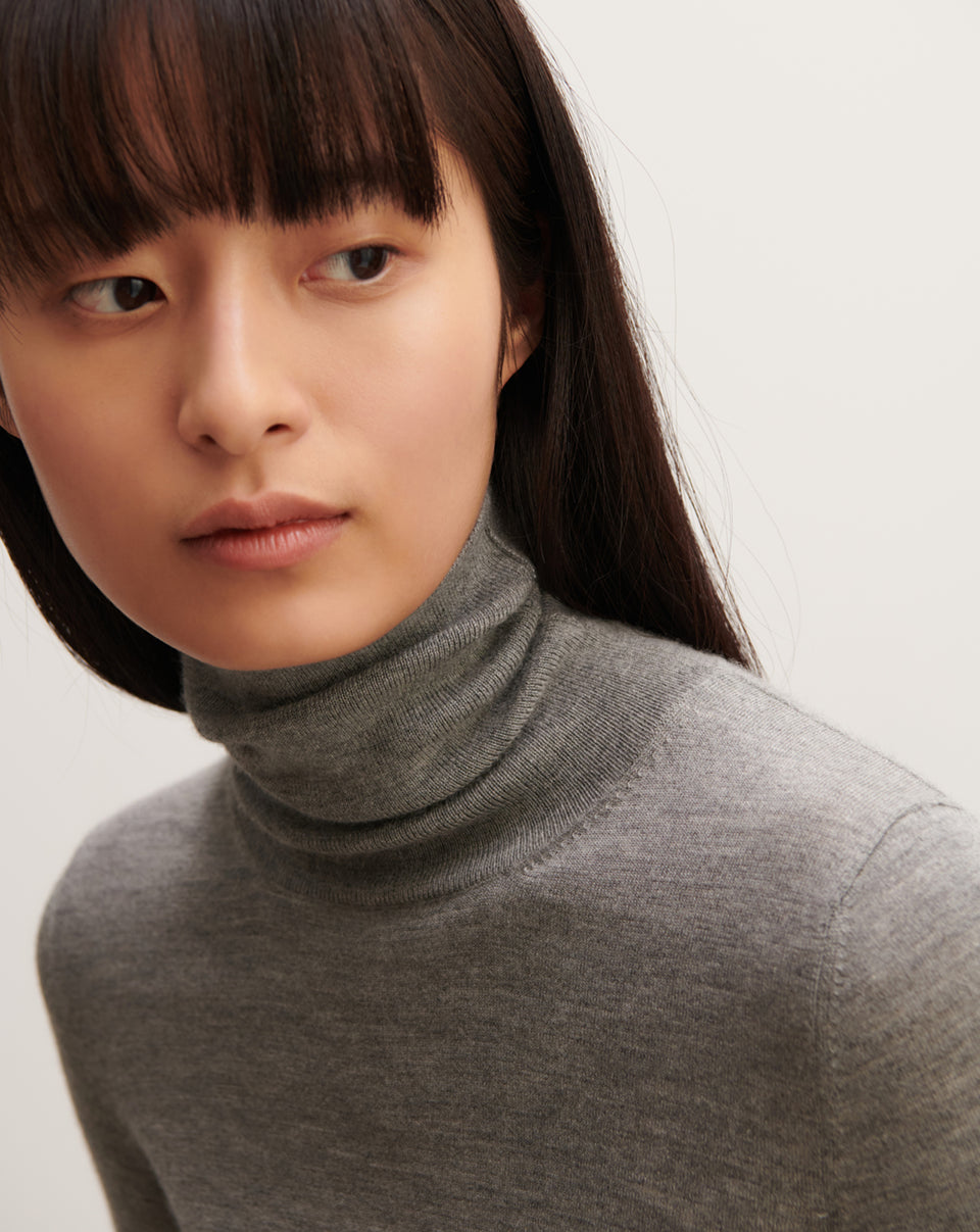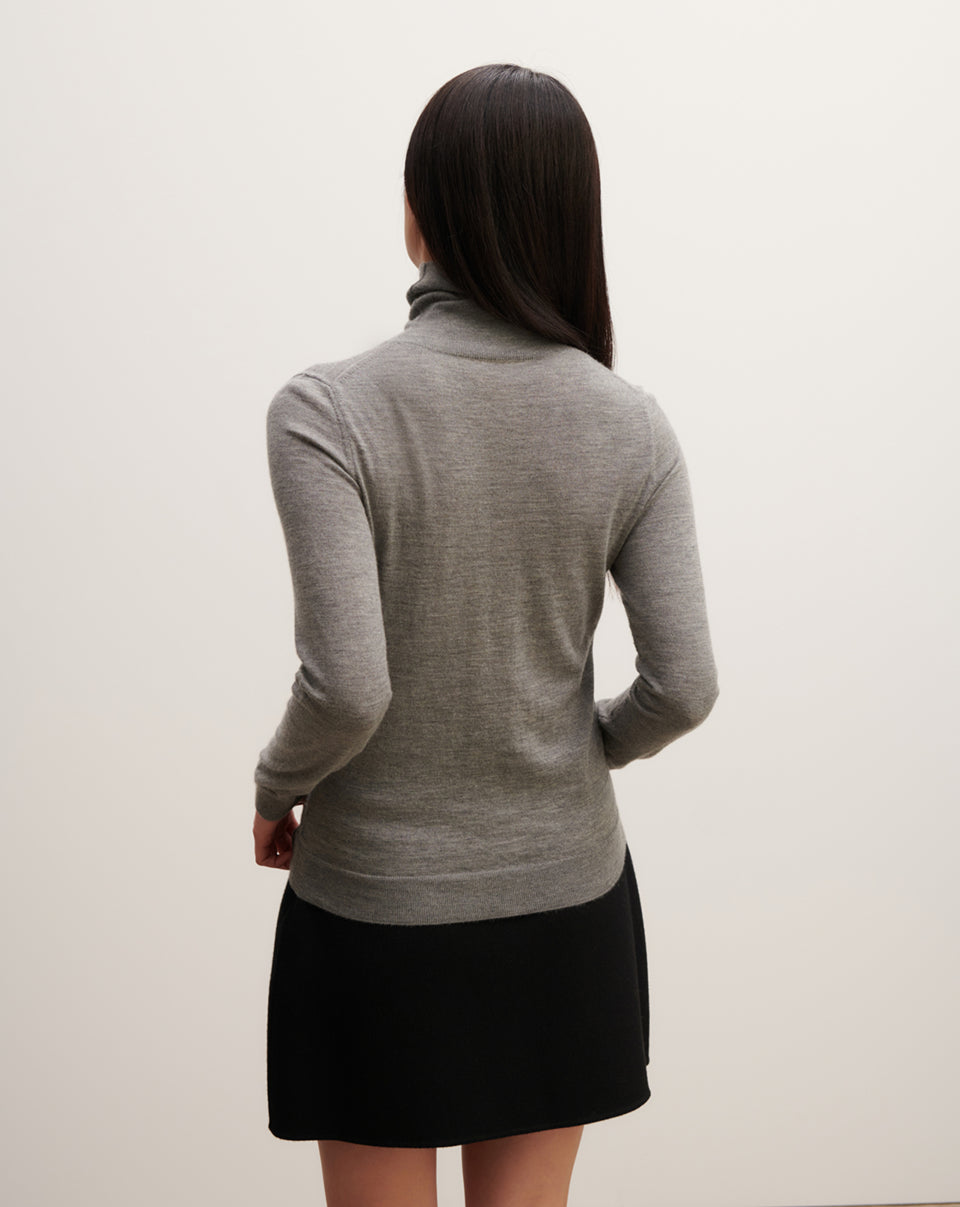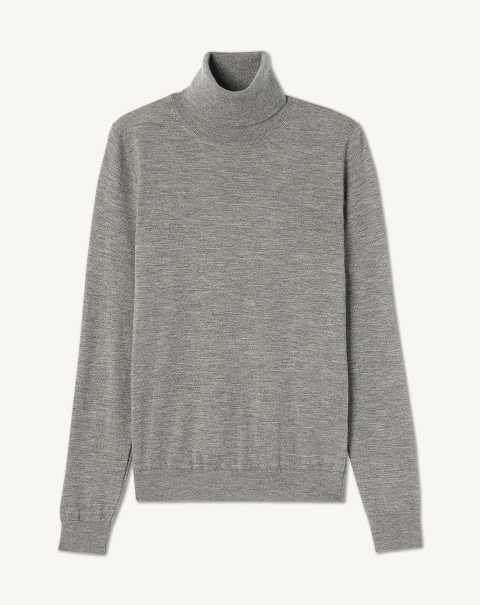 This simple, thin, long-sleeved MO940N Gris Meteo turtleneck in gray is made of 100% cashmere. It's the perfect autumn staple.