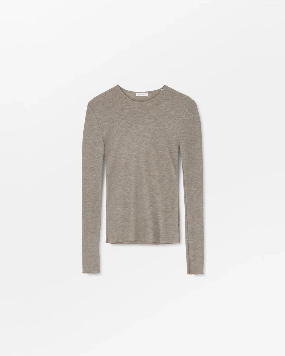 The minimalist, thin, woolen Amy O-neck SKALL longsleeve features a round neckline and narrow, long sleeves. It features a figure-hugging fit and a subtle ribbed texture. Made of eco-friendly, skin-friendly merino wool, it's the perfect top for layering.