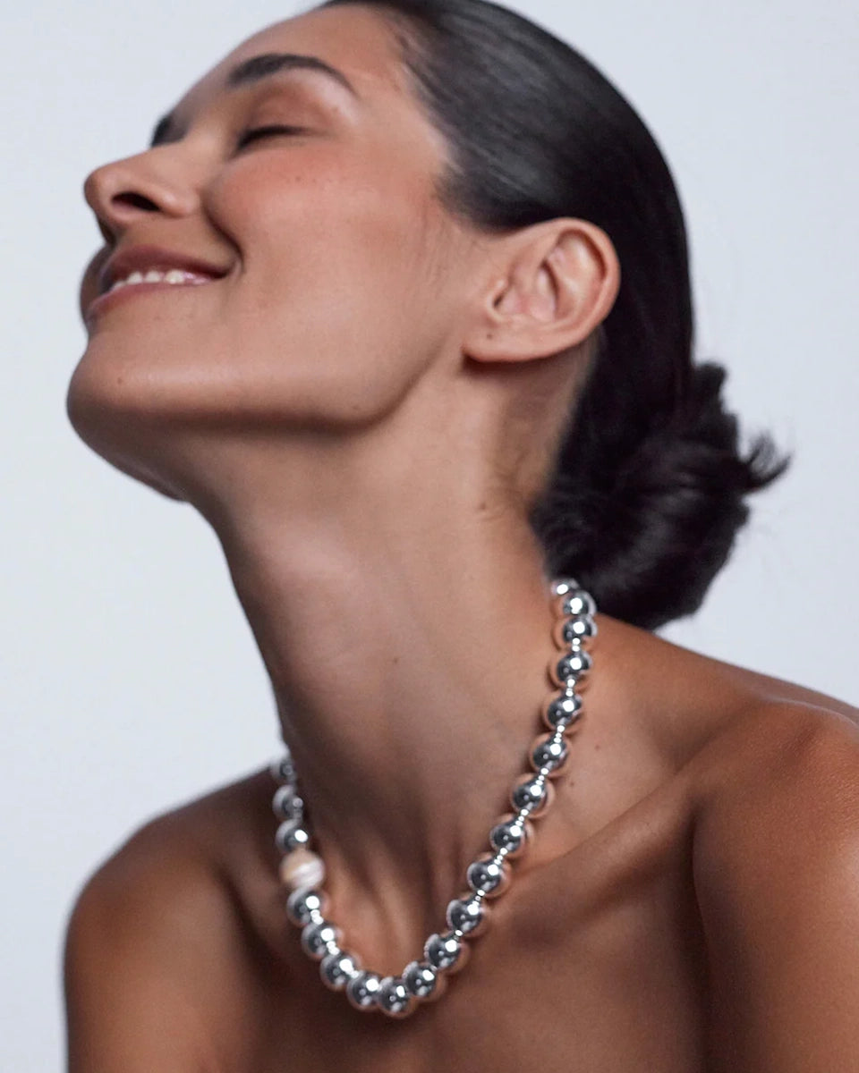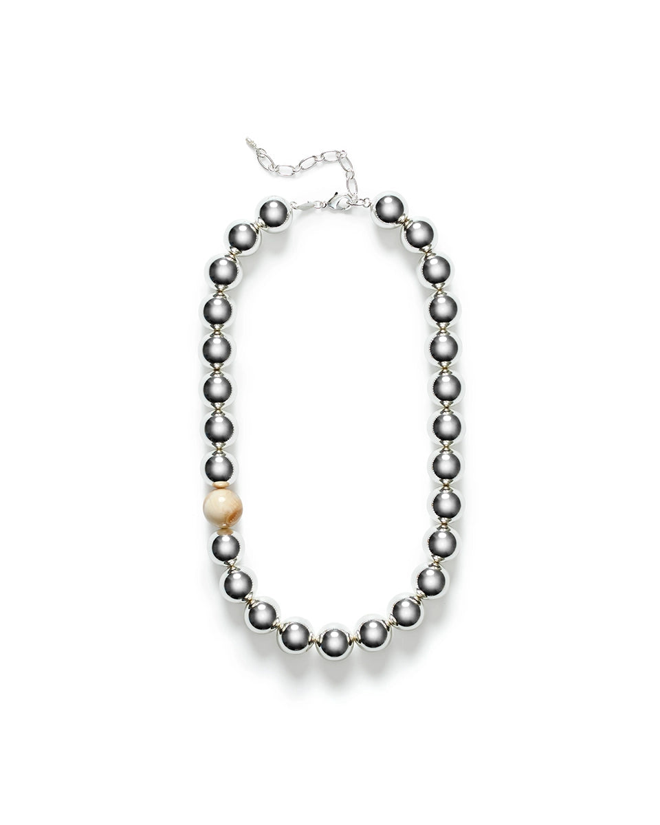 Anni Lu elegant, short Hi Ho Silver necklace features large, round silver beads. Finished with an adjustable chain.