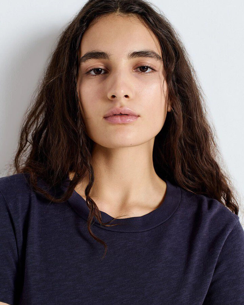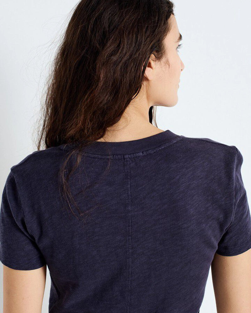 Classic, cotton, navy blue SONOMA American Vintage t-shirt with short sleeves and a round neckline. The T-shirt has a straight cut and tight fit. It has a thick seam on the back. Made of soft and thick cotton . It's the perfect basis for any everyday styling.