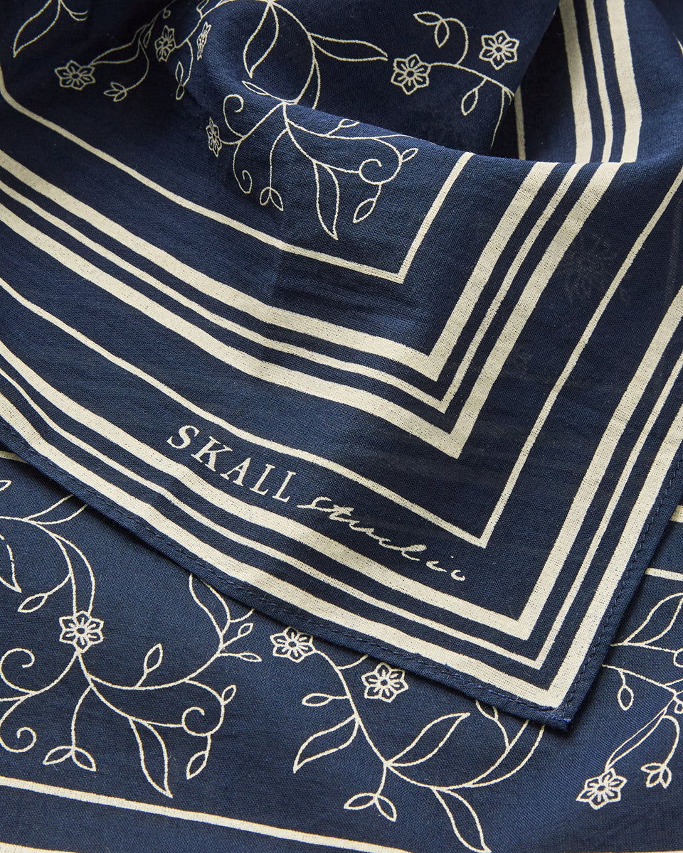 Klasyczna apaszka Skall Classic z cienkiej bawełny organicznej w drobny, roślinny print.
