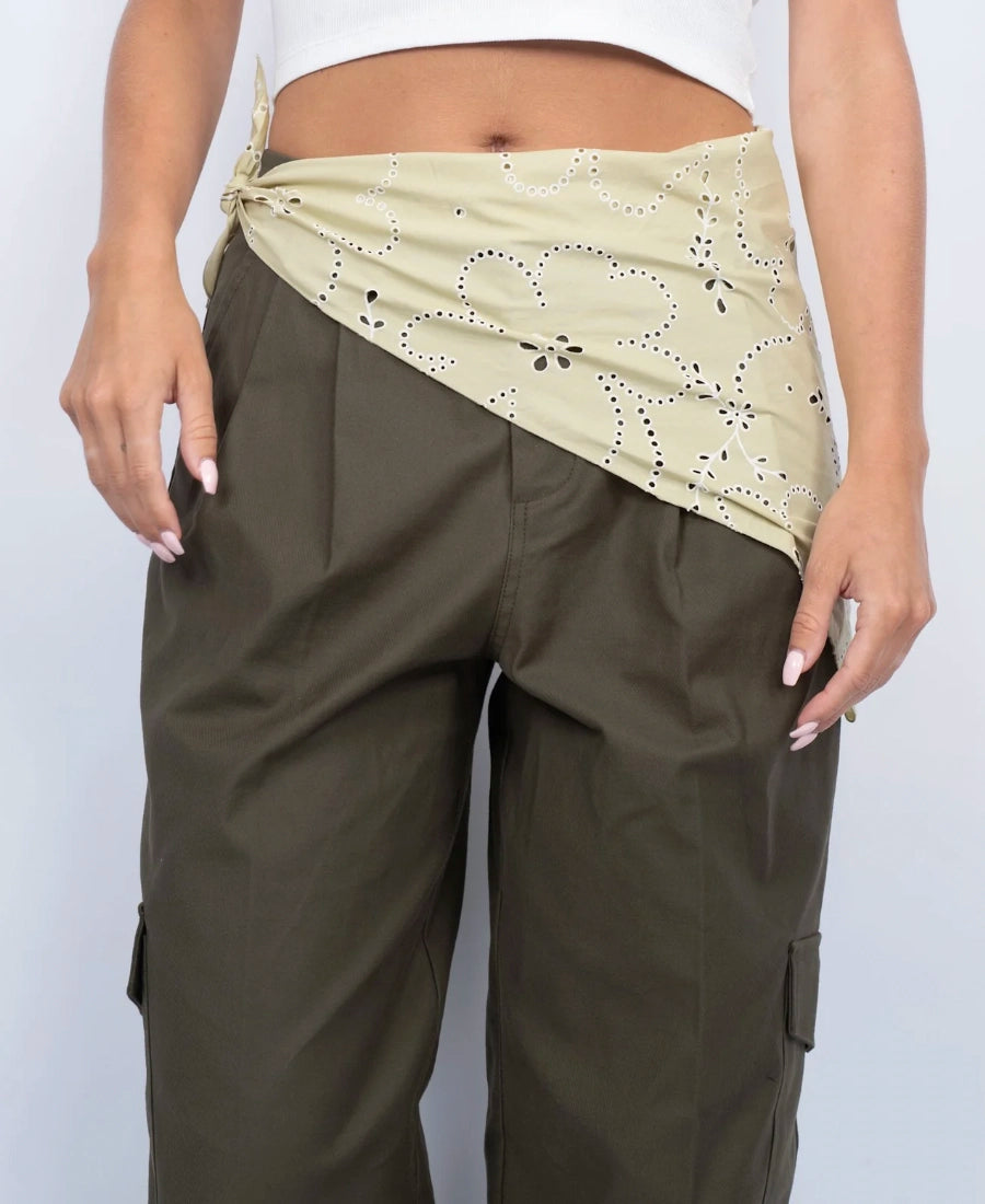 Bawełniana bandana Floral SUI AVA z kwiatowym, ażurowym haftem. Noś ją na głowie, zawiąż w talii, owiń nim szyję lub przywiąż do ulubionej torebki.