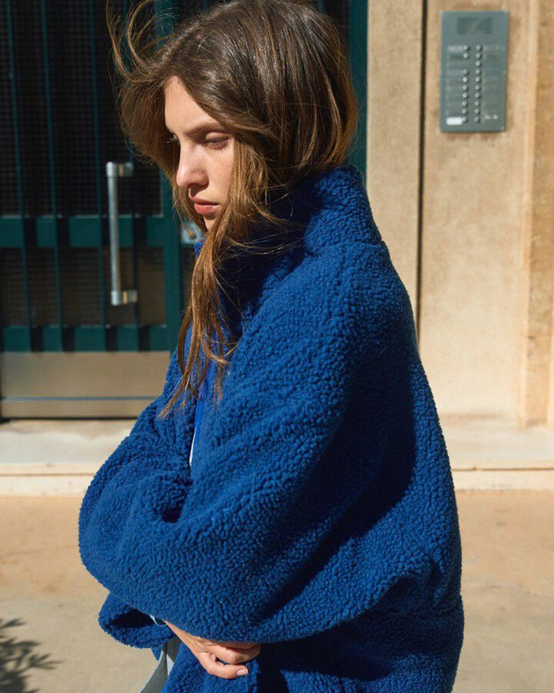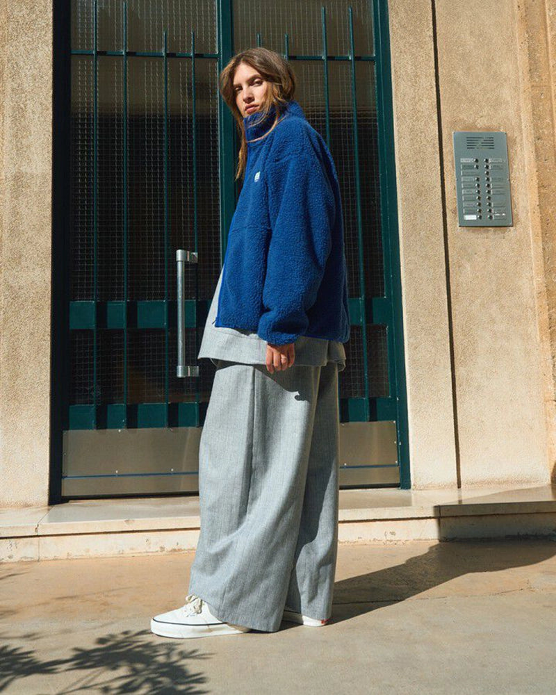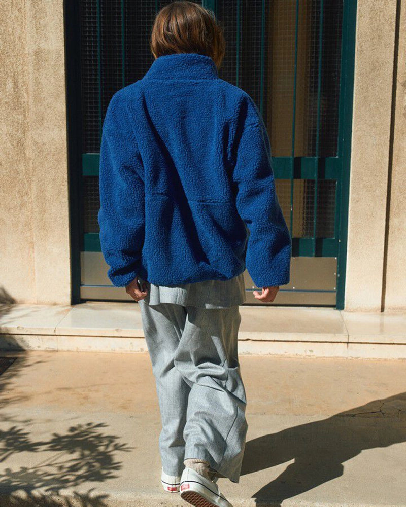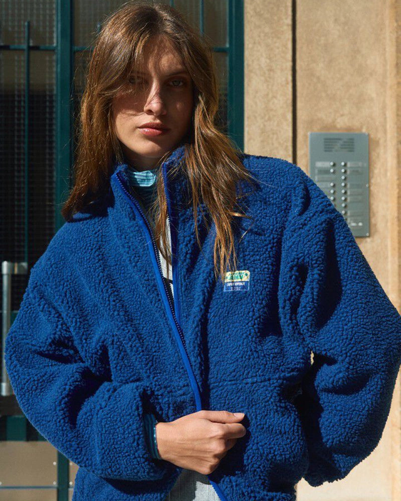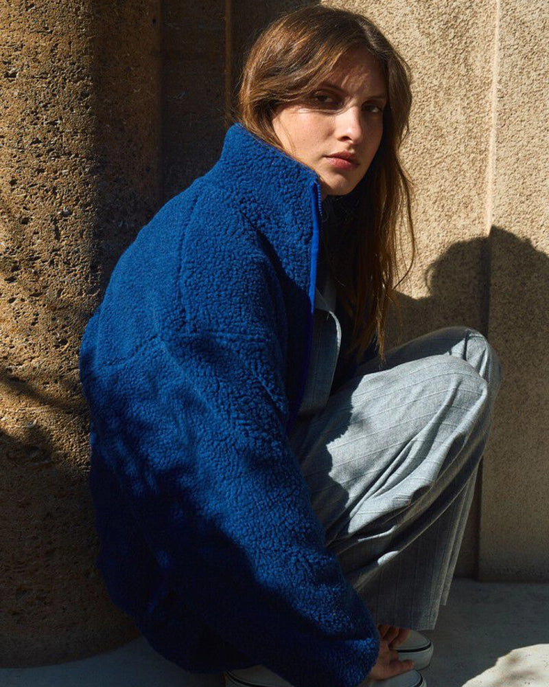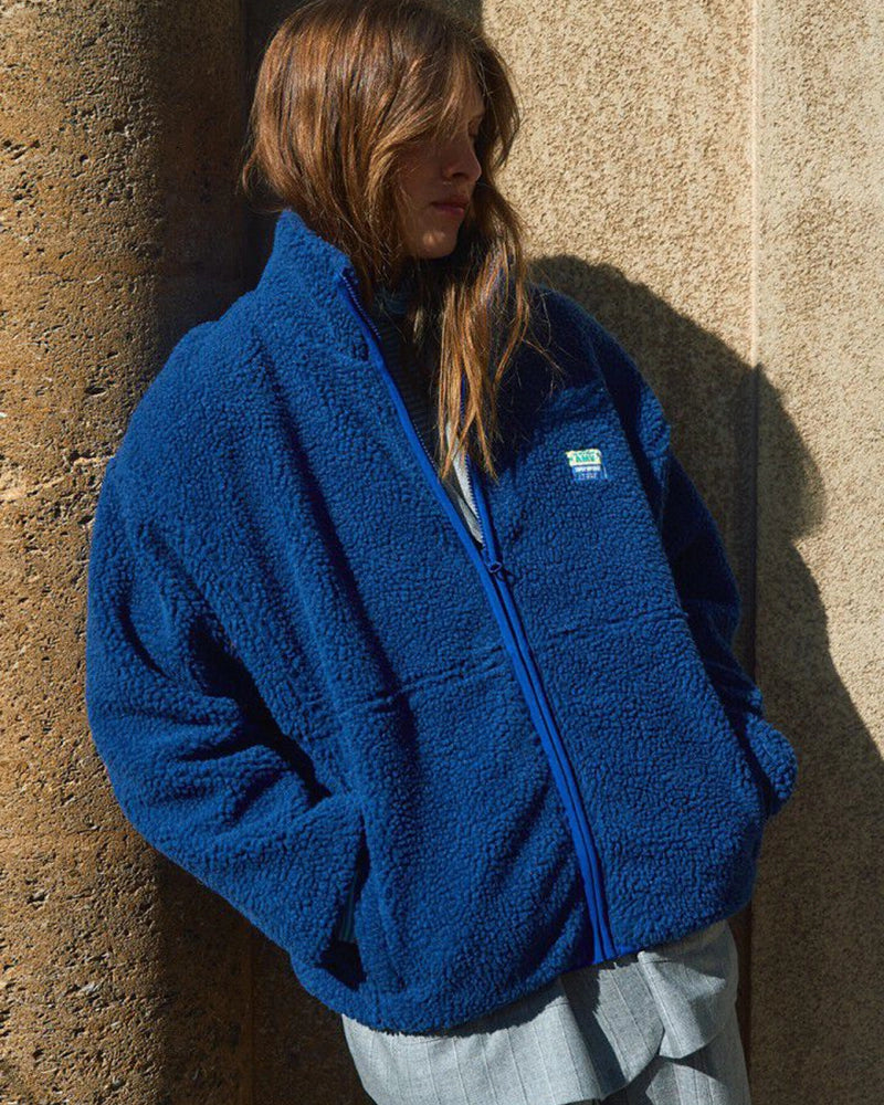 Ciepła, oversizowa bluza polarowa HOKTOWN American Vintage z wysokim kołnierzem pod szyję. Zapinana za pomocą zamka błyskawicznego. Nad lewą piersią posiada niewielką naszywkę z logo marki.